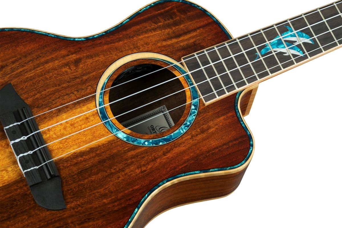 Pour célébrer le 30¡ anniversaire d'Ortega Guitars, nous sommes fiers de présenter quatre ukulélés ténor, méticuleusement fabriqués à la main en bois massif d'acacia AAA. Ces ukulélés en édition limitée présentent de séduisants incrustations de vie marine sur la touche 5/12, montrant des dauphins, des baleines bleues, des méduses et des tortues marines, rendant hommage aux merveilles de la nature. Chaque ukulélé est livré avec un étui professionnel º 30¡ anniversaire inclus. Célébrez avec nous et découvrez la beauté et la précision de ces instruments de perçage en édition limitée. Taille : ténor. Largeur du sillet : 35 mm (1,38”). Échelle : 430 mm (16,93”). Taille ténor Incrustations de vie marine Dessus en édition limitée : Bois d'acacia massif AAA, finition brillante Dos et éclisses : Bois d'acacia massif AAA, finition brillante Style : acajou, finition brillante Touche et chevalet : ... Électronique : MagusFly/U Système de préamplification à bouche rechargeable Tête : Plaque de tête de 4 pouces en ligne inversée : acacia, finition brillante Raccord : raccord supérieur et inférieur en érable flammé Bord supérieur perle bleue Ouverture perle/érable Perle bleue Rosette Perle bleue, incrustations de dauphin Perle Bleue/Perle Blanche Échelle : 430 mm (16.93'') Largeur du sillet : 35 mm (1,38'') 30,º anniversaire pour étui inclusORTEGA2024