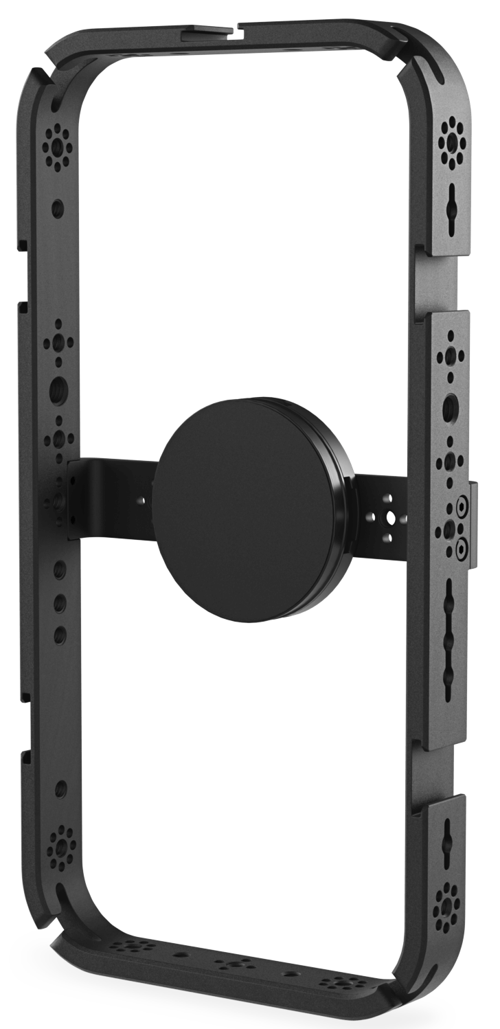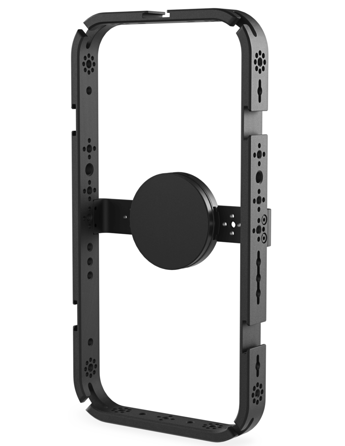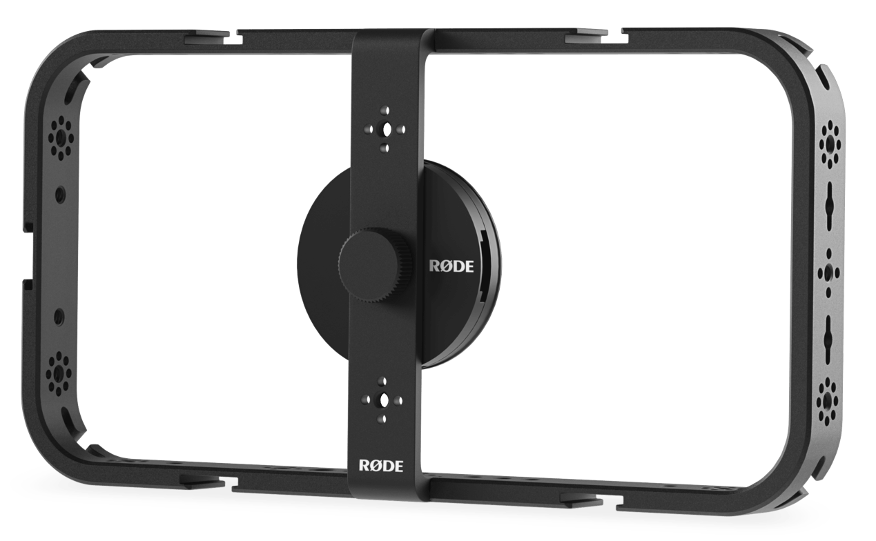RODE PHONE CAGE è una gabbia magnetica in alluminio per IPhone MagSafe o altri smartphone con custodia compatibile con MagSafe, per riprese video cinematografiche. Le caratteristiche tecniche includono, 4 slot per la gestione dei cavi integrati, 5 supporti a slitta per il fissaggio di microfoni e luci, filettature da 1/4" e 3/8" per l'uso con treppiedi, maniglie e altri accessori, 33 filettature di montaggio totali, supporto per ARRI locking-pin.