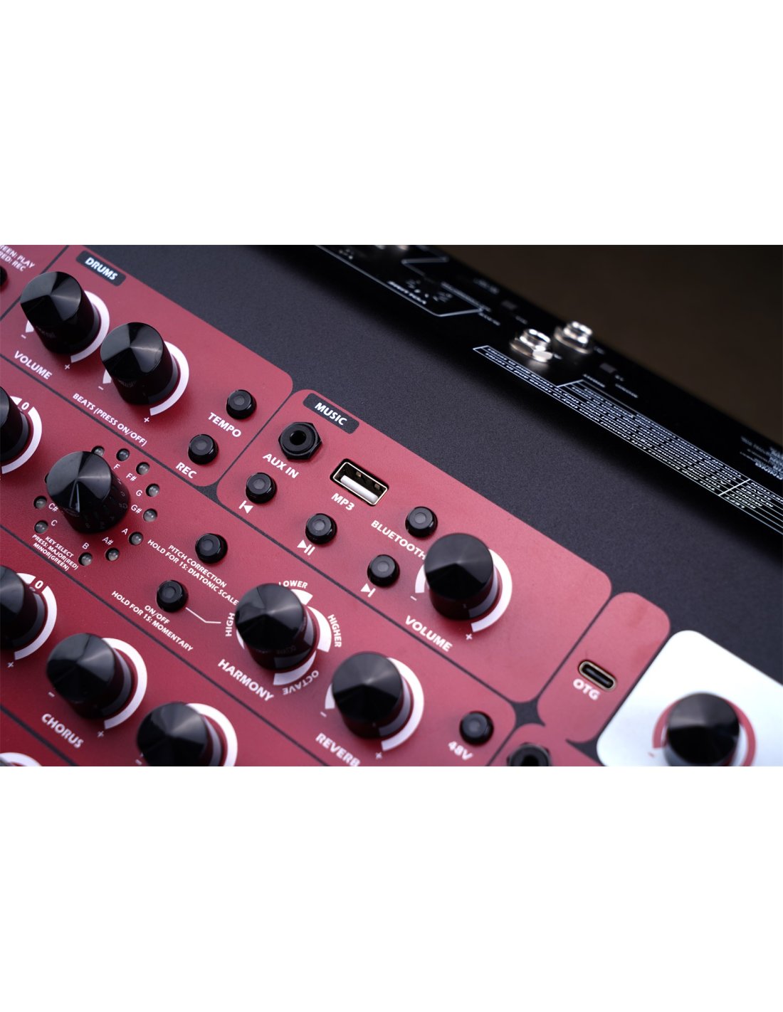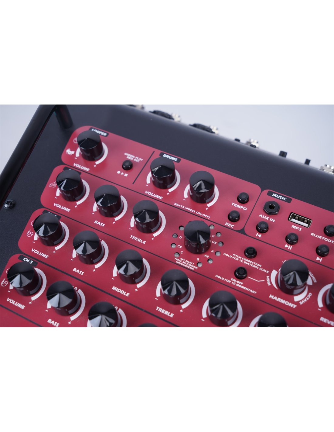 - Ingressi audio: 3x XLR combo (mic o mic/guitar), 3x1/4''(line in) 1x1/4'' (amp in), 3x1/8'' (aux in, port1, port 2)