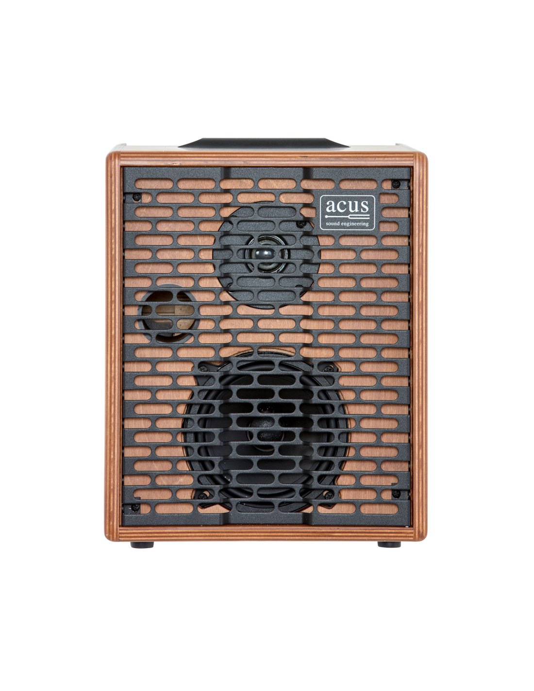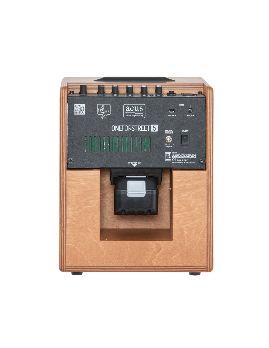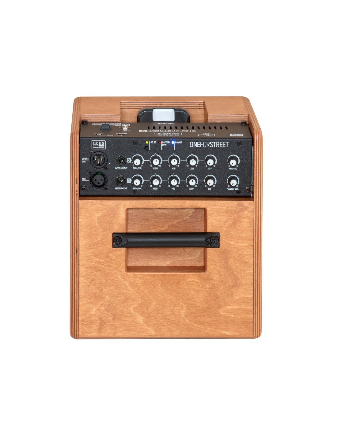 ACUS ONE FORSTREET 5 WOOD è un amplificatore a batteria da 40W, ideale per busking. Le caratteristiche tecniche includono 2 ingressi con controlli Gain, Send effects, Eq a 3 bande, uscita Direct out bilanciata. Corpo in multistrato di betulla.