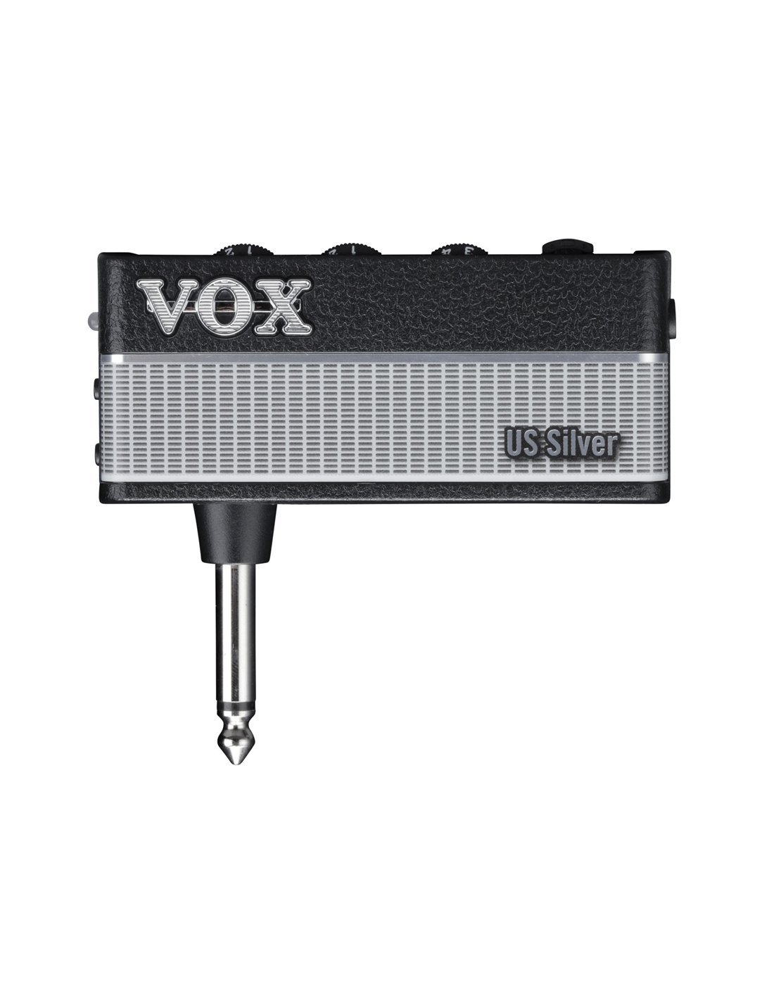 VOX AMPLUG 3 US SILVER è un mini amplificatore cuffie a batteria per chitarra elettrica, che riproduce il classico suono vintage di un amplificatore combo made in U.S.A come il Twin o il Bandmaster a 2 canali. Le caratteristiche tecniche includono, 2 canali selezionabili: CH1 per un suono Clean caldo e CH2 per un suono Drive morbido, controllo di Volume e Tono, 4 effetti stereo digitali: tremolo, chorus, riverbero, delay, 9 pattern di batteria selezionabili, uscita cuffie tramite mini jack 3,5mm TRS e ingresso aux su mini jack 3,4mm TRRS. Si alimenta con 2 batterie AAA, non incluse.