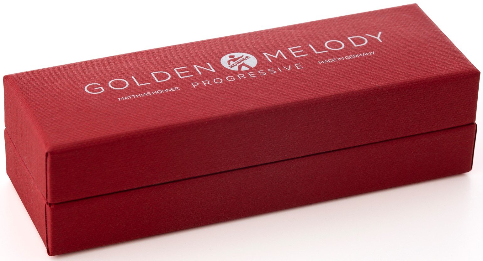 HOHNER GOLDEN MELODY PROGRESSIVE C (DO). Armonica diatonica a 20 voci in Do ad accordatura temperata con 10 fori , 20 ancie in ottone con fresatura di precisione, corpo in ABS e piastra in acciaio inox. Include robusta custodia in cartone stampato.