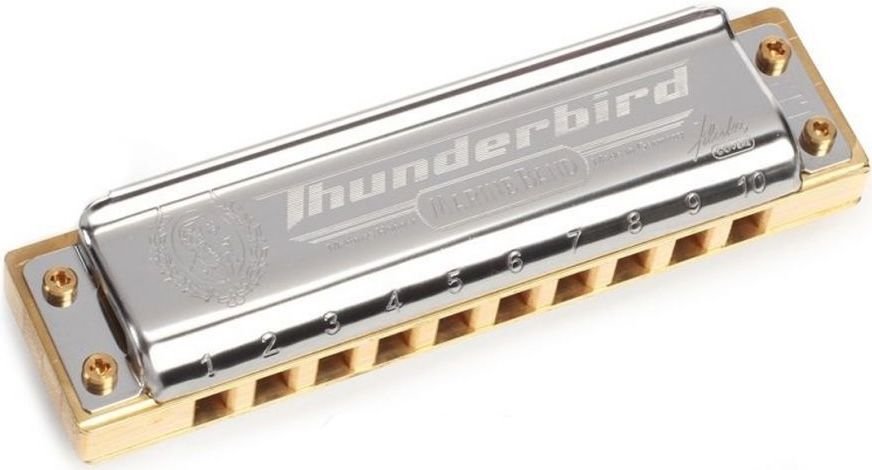 Marine Band Thunderbird per afinazione bassa. Corpo in bambú con tripla laccatura per un suono potente e un comfort ottimale. Cover design ispirata a Joe Filisko. Il nuovo sviluppo del profilo della canna consente sfumature piú profonde. Scañalature laterali acustiche.