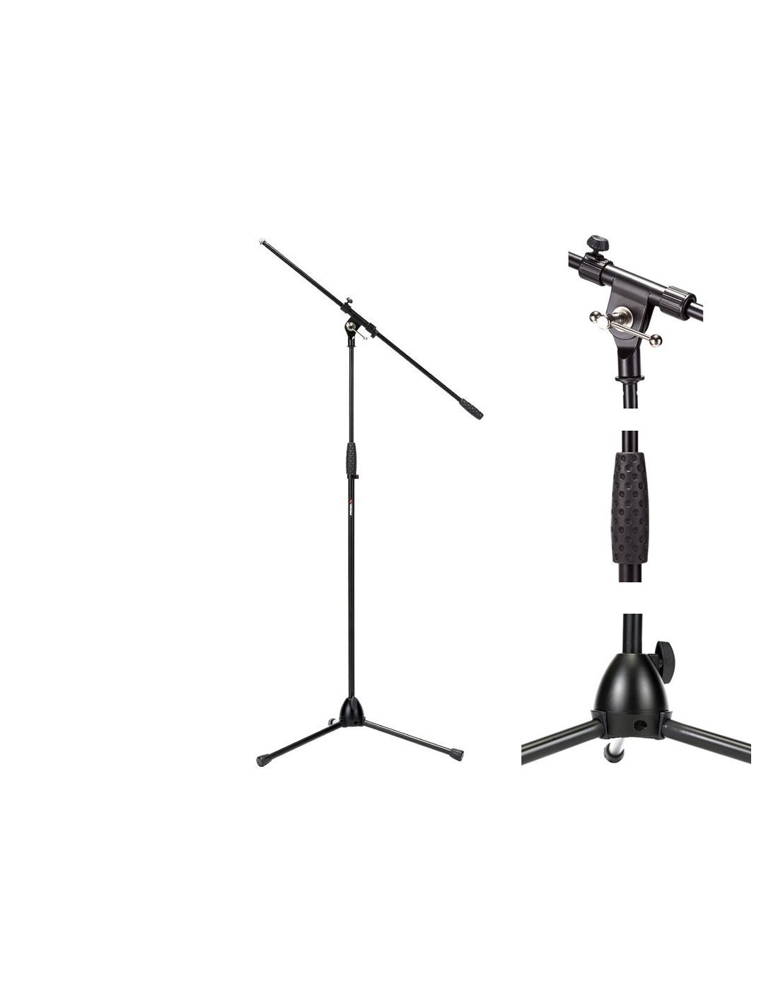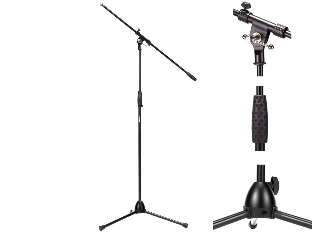 La PROEL RSM195BK ASTA MICROFONICA A GIRAFFA NERA è un'asta microfonica con giraffa, altezza regolabile 975 – 1580 mm, lunghezza braccio giraffa 820 mm, base a treppiede in acciao pressofuso con diametro ingombro di Ø 720 mm, manicotti di regolazione altezza e contrappeso in gomma "soft grip". Colore nero opaco, peso 2,2 Kg.