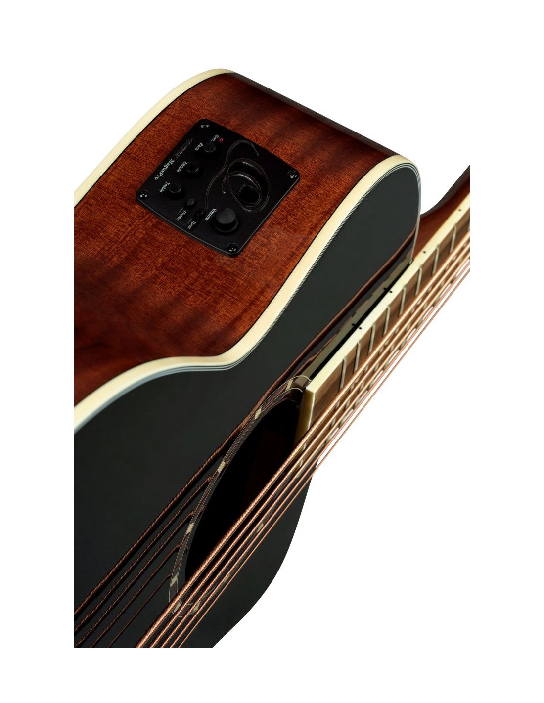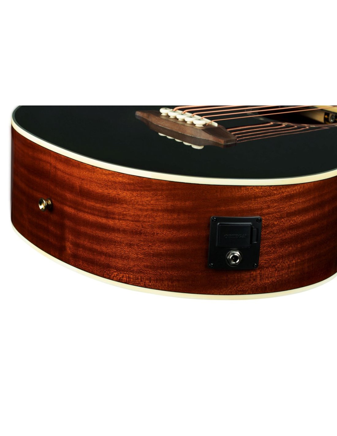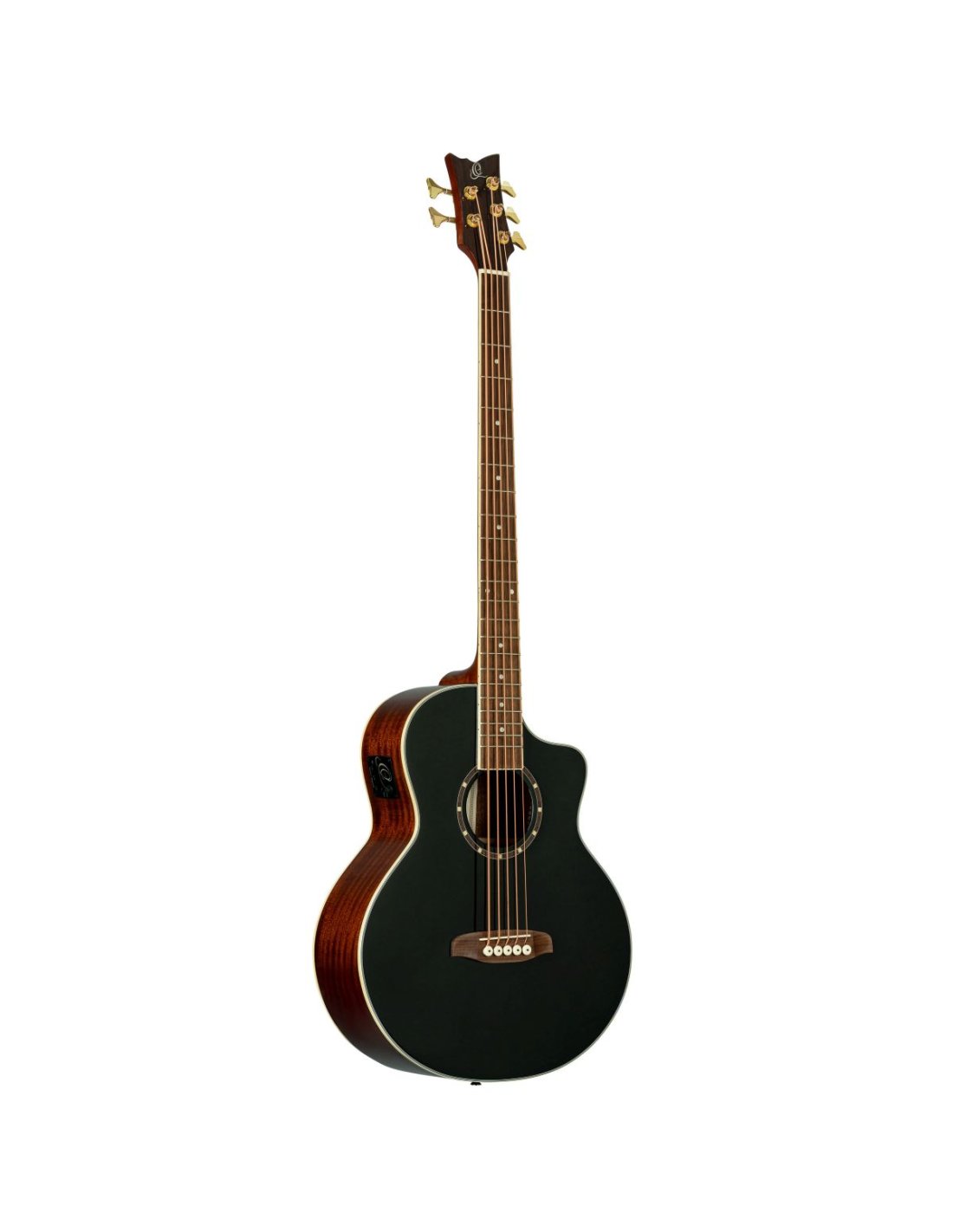 'La nostra nuova serie di bassi D8 presenta un top in abete rosso e fasce e fondo in mogano. Il tutto equipaggiato con il preamplificatore MagusPRO e l'hardware oro. La rilegatura in ABS bianco/avorio e la copertina nera rendono gli strumenti davvero sbalorditivi. Dimensione: Scala Media Profonditˆ del corpo di 115 mm (4,52”). Larghezza del capotasto: 45 mm (1,77 pollici). Scala: 812 (32''). Basso acustico a 5 corde Piano: pizza, finitura nero lucido Fondo e fasce: mogano, finitura lucida Stile: mogano, finitura lucida Tastiera e ponte: Noce Elettronica: Ortega MagusPRO/B con accordatore Anima: accordatori in oro pressofuso a 2 vie Profonditˆ del corpo: 115 mm (4,52”)ORTEGA2024'