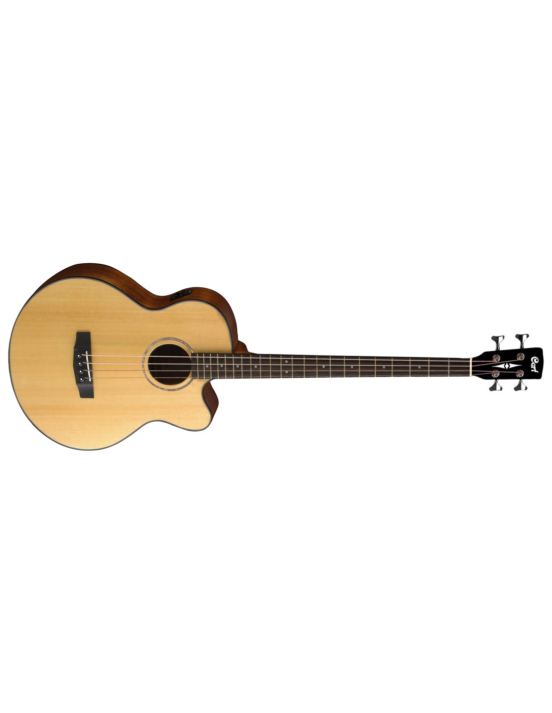 Basso Acustico Cort AB850F NAT colore NATURAL. Il Cort AB850F NAT è un basso acustico elettrificato a 4 corde. Le caratteristiche tecniche includono fondo e fasce in mogano, top in abete, manico in mogano, tastiera in palissandro, spalla mancante, amplificazione Fishman Isys Plus w/Sonicore pickup. Bag in dotazione.