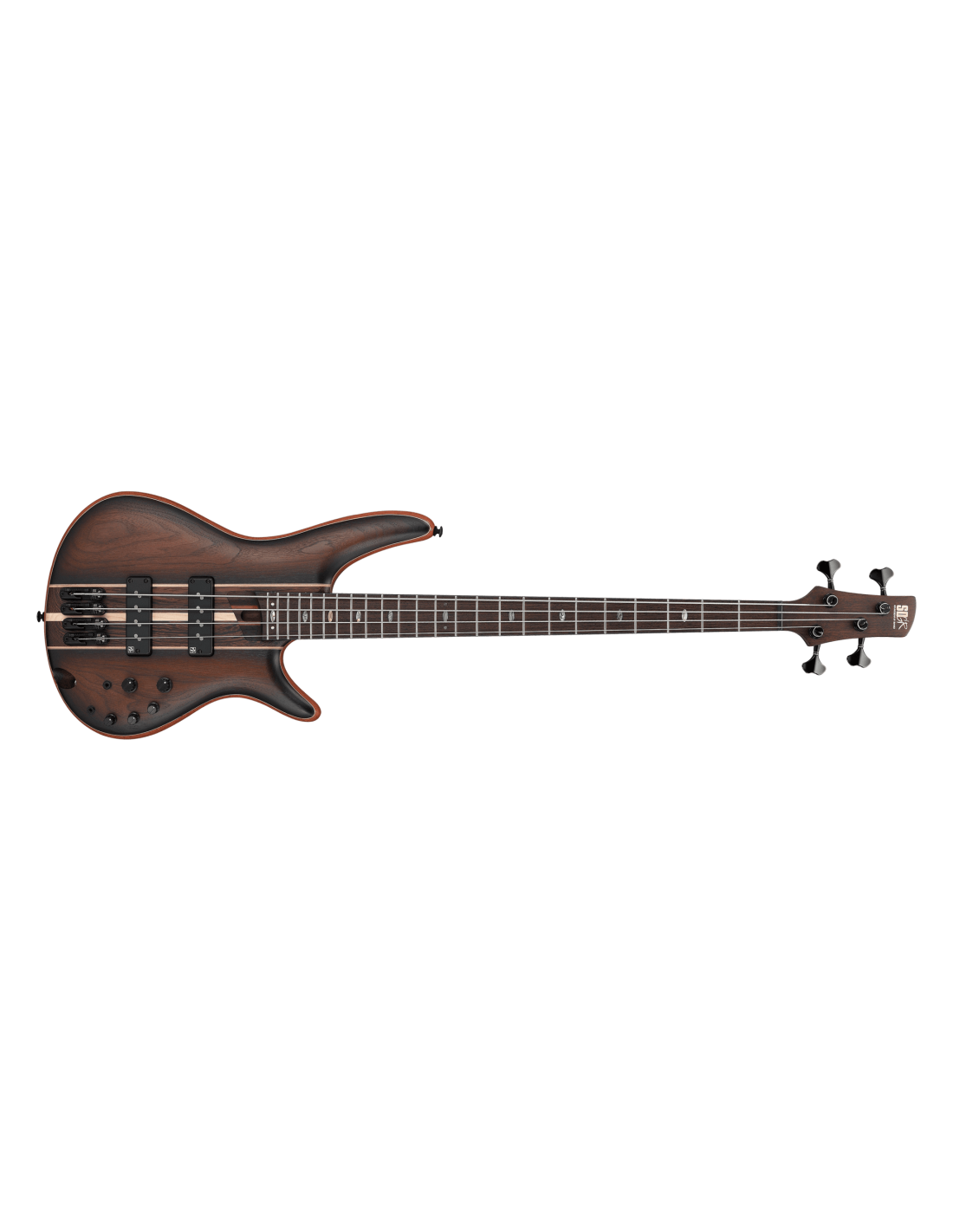 IBANEZ SR1350B-DUF. Basso elettrico 4 corde serie Ibanez SR con corpo in Mogano, top in Noce/Panga Panga/Acero, manico 5 pezzi in Panga Panga/Purpleheart Atlas-4 con rinforzi KTS TITANIUM, tastiera in Panga Panga con 24 tasti Medium Jumbo steinless steel, intarsi in abalone e finitura Dual Mocha Burst Flat. L'elettronica è dotata di 2 pickup Nordstrand passivi, Ibanez Custom Electronics 3-band EQ con controlli Volume, Tono e 2 Pickup Switch. Presenta inoltre ponte MR5S, capotasto Graph Tech BLACK TUSQ XL, hardware nero.