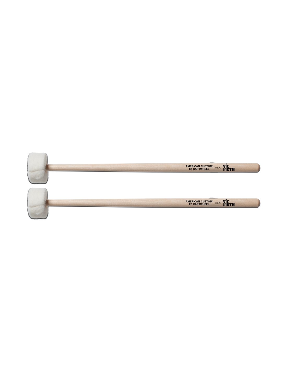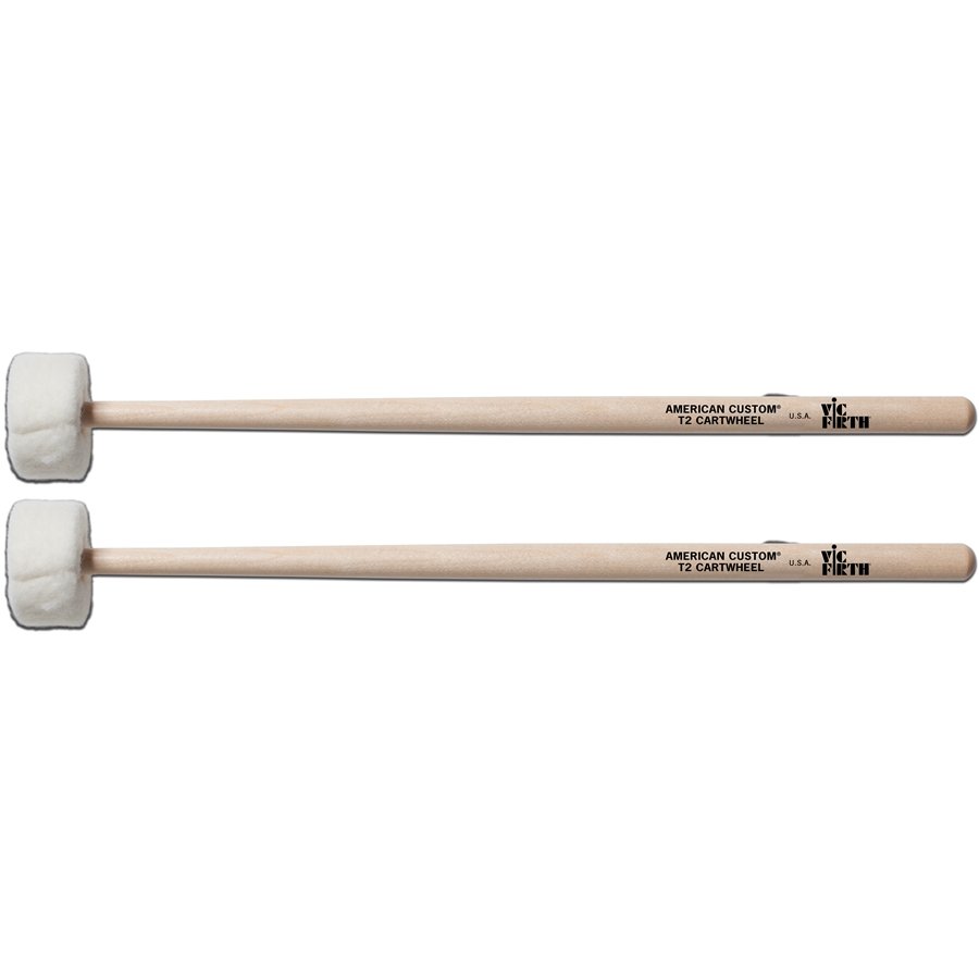 Bacchette Vic Firth T2. Le Vic Firth T2 sono mallets per timpani in acero. La punta in feltro a cilindro molto morbida produce un suono ricco, ottimo per soft rolls e legato strokes.