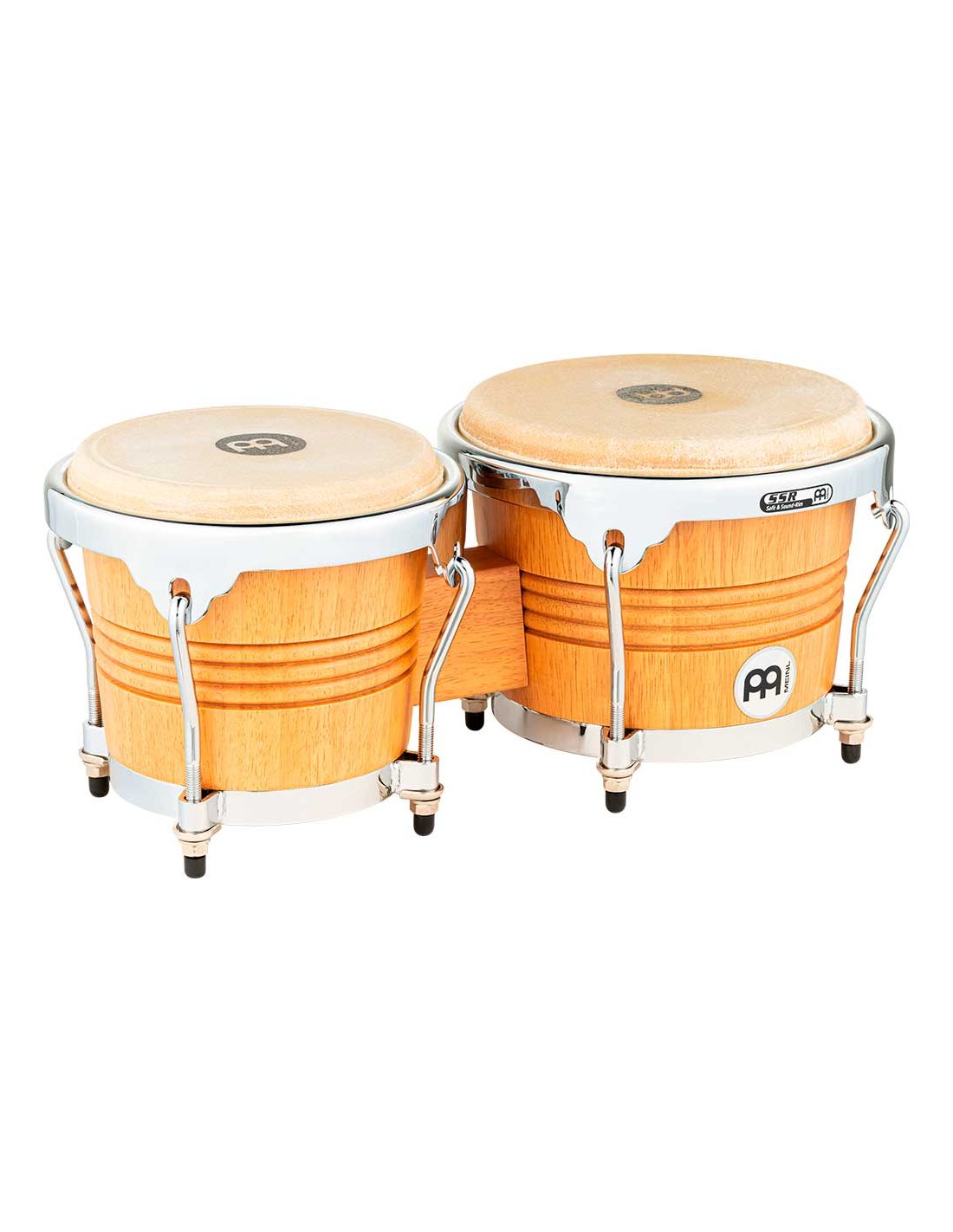 'Set di bonghi serie Wood (6 3/4 e 8'') WB200SNT-M. Questo bongo è stato progettato rispettando le caratteristiche del bongo tradizionale cubano. Il corpo è in legno di quercia del Siam e le teste sono in pelle di bufalo selezionata a mano. Il miglioramento che è stato aggiunto sono stati i cerchi arrotondati SSR che rendono la pratica molto più confortevole.