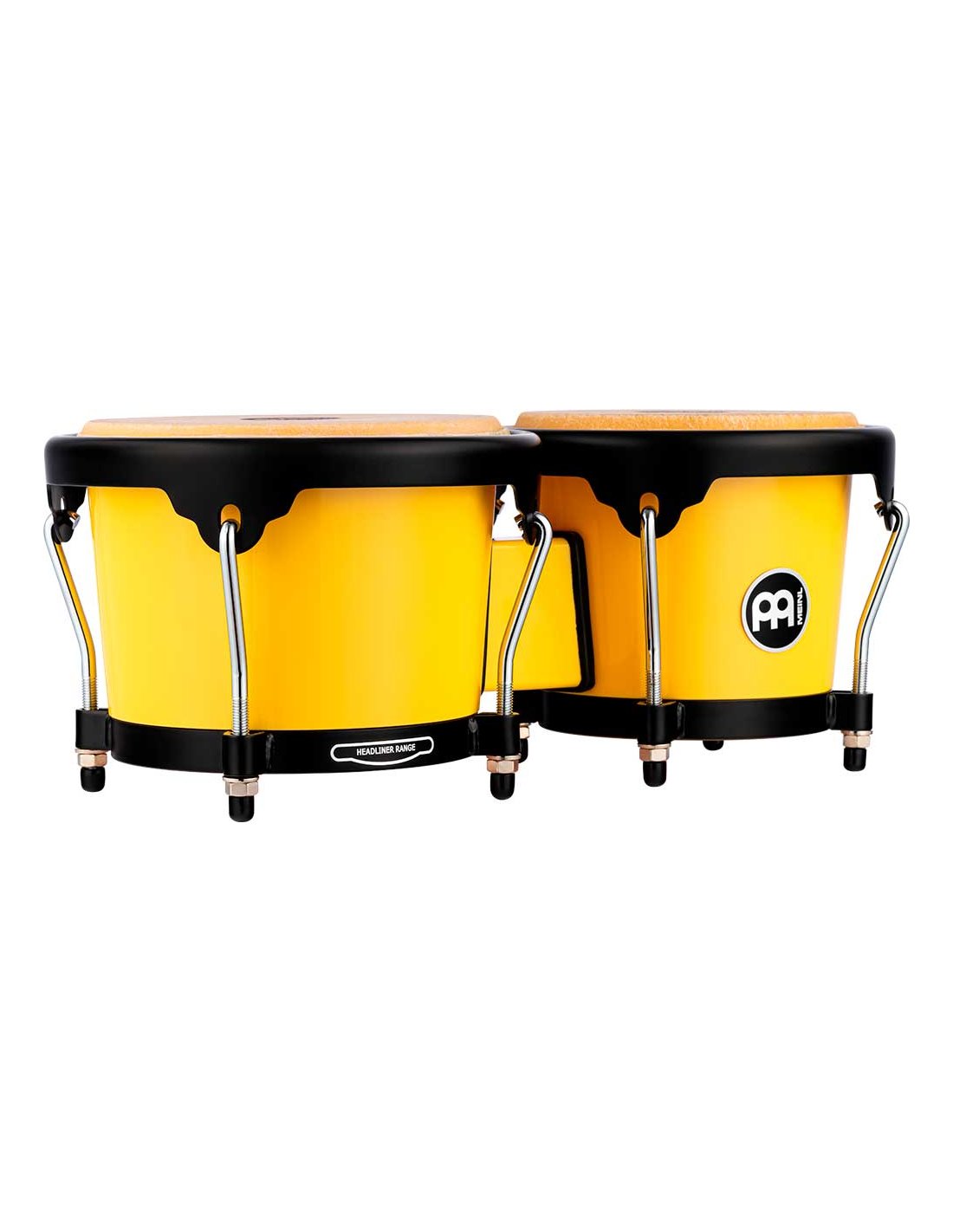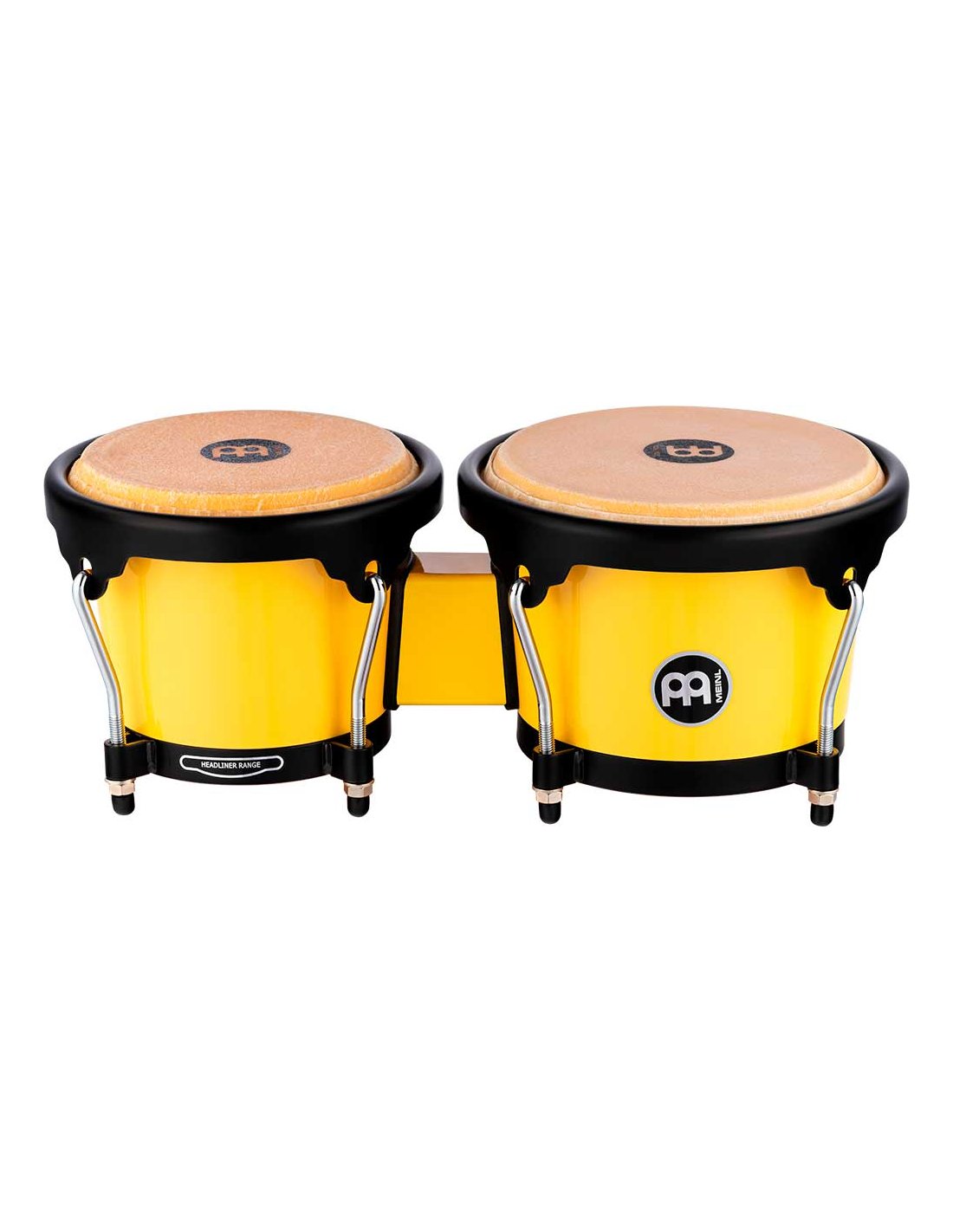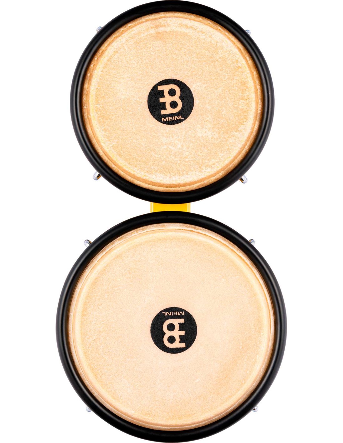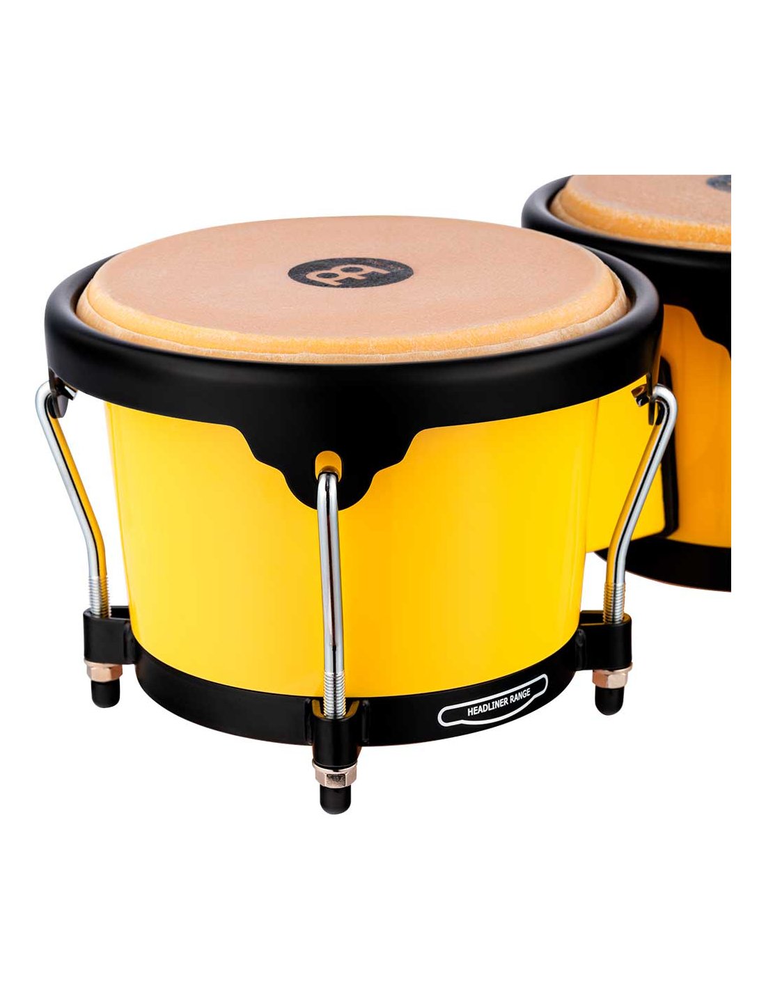 'Bongo in ABS rifinito in giallo luminoso con misure 6 1/2 ''e 7 1/2''. L'hardware è tutto nero. Patch della pelle bufalo selezionata a mano.