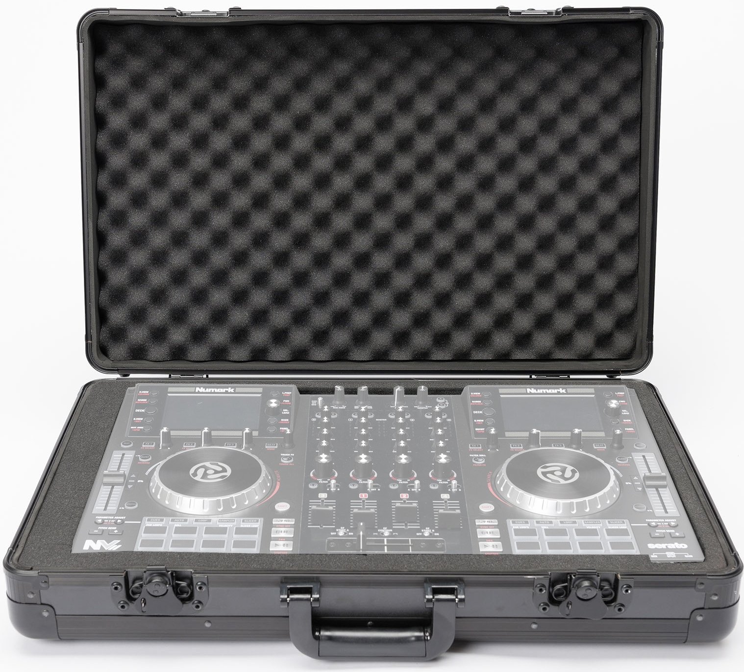 MAGMA CARRY LITE DJ CASE XL PLUS è una custodia a valigetta per console da DJ di dimensioni Extra Large costruita in MDF, con profili in alluminio. Presenta chiusure a farfalla, interno completamente imbottito con spugna pick & pluck modellabile e adattabile a seconda delle dimensioni della console, robusta maniglia e ganci per tracolla.