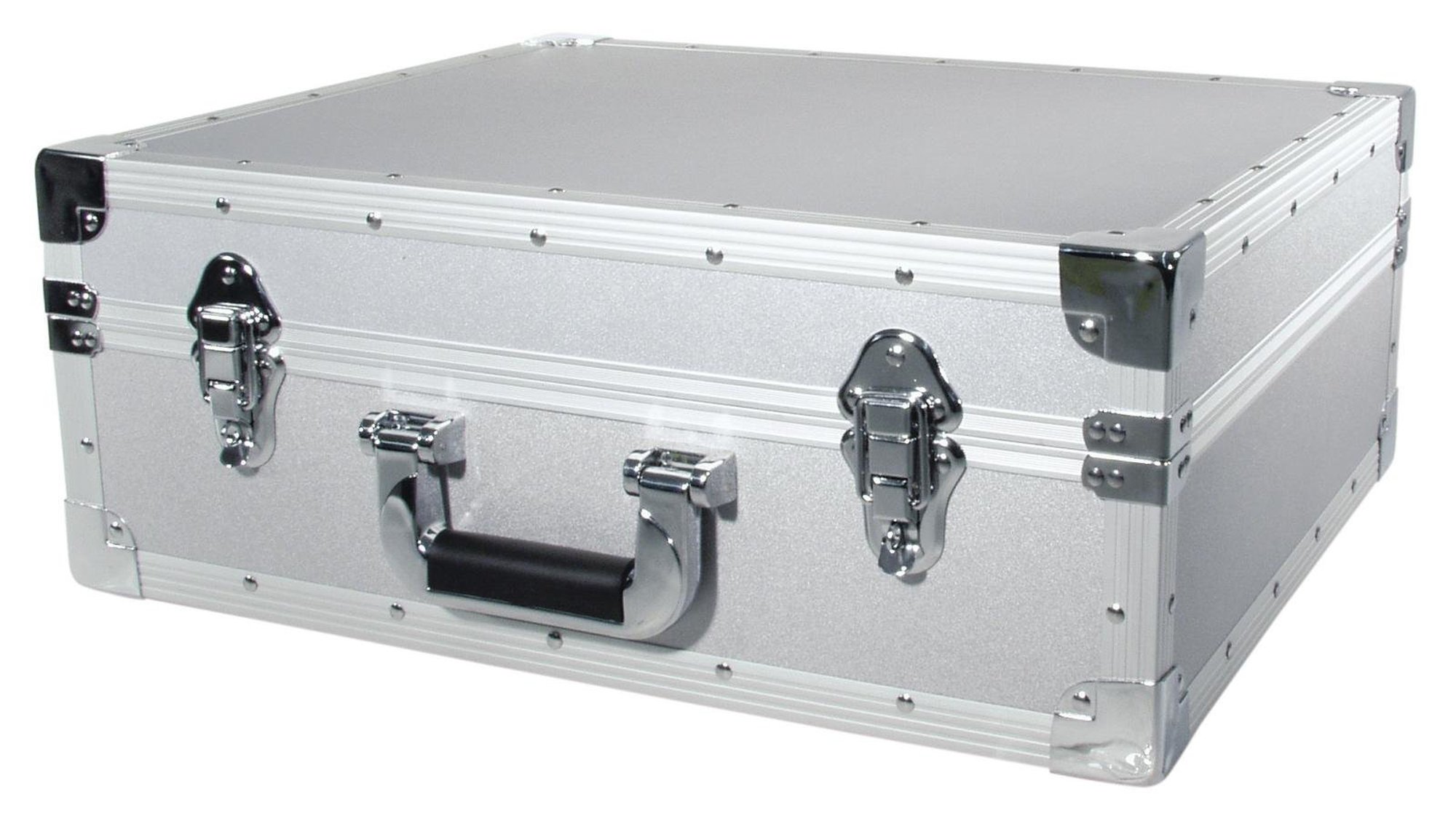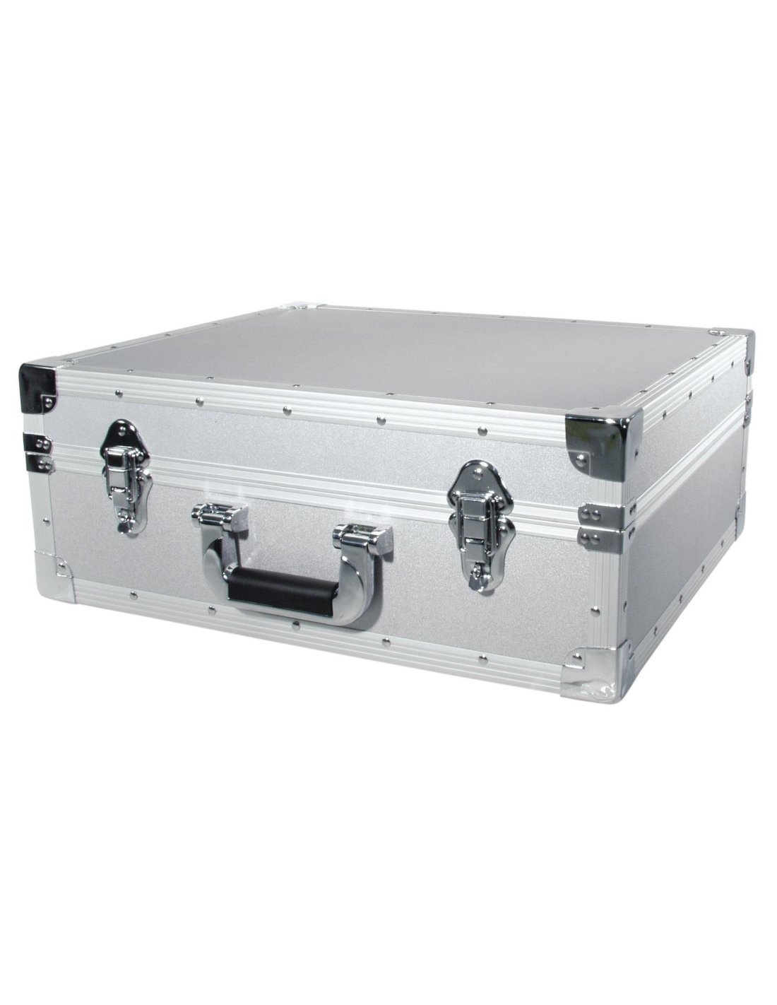 ROADINGER TURNTABLE CASE SILVER. Case a valigetta in compensato rivestito in alluminio per giradischi. Interno imbottito in schiuma ad alta densità sfoderabile, piedini in gomma, maniglia e chiusura a molla.