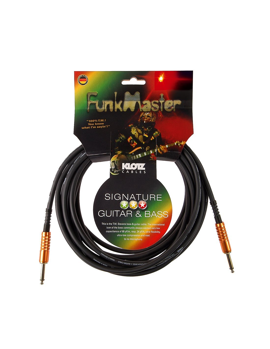 Cavo per strumenti consigliato per basso Progettato con Stevens Funkmaster TM Nucleo in rame Guaina in PVC ultra denso con doppia spirale in rame Connessione jack Klotz da 6,35 mm Cappuccio in alluminio anodizzato Elevata trasparenza, compressione ultra bassa Jack dritto/dritto Lunghezza 4,5 metri