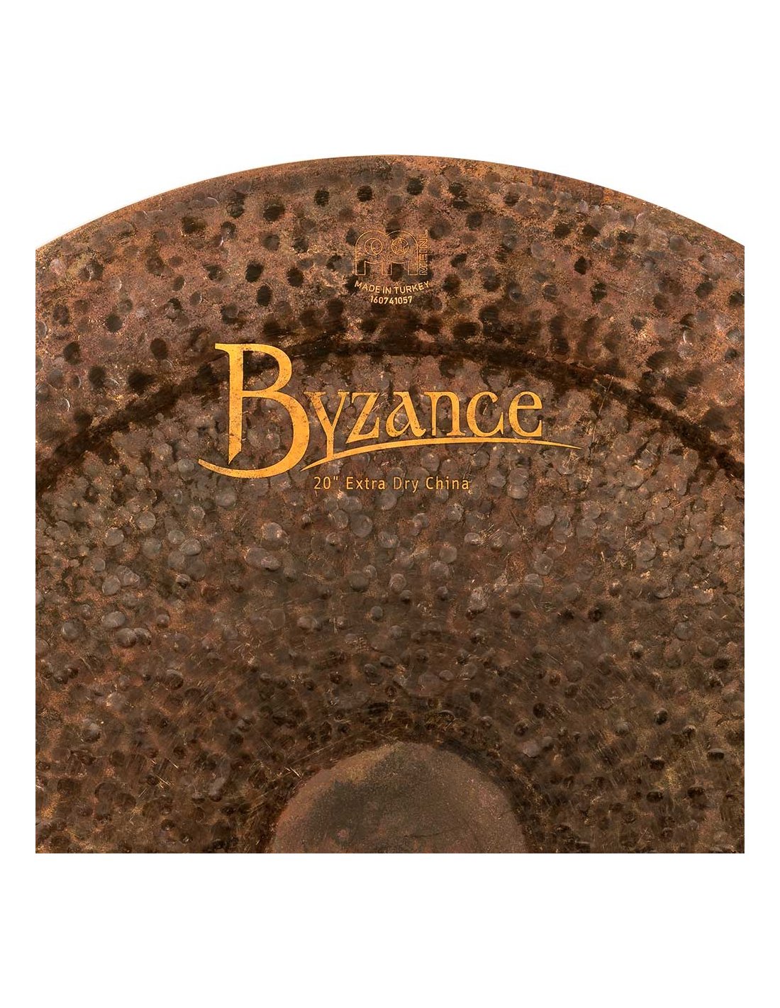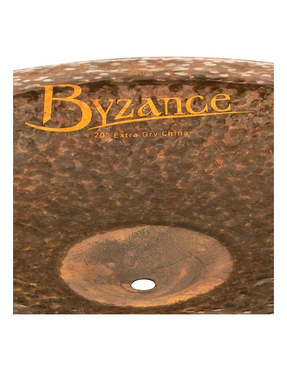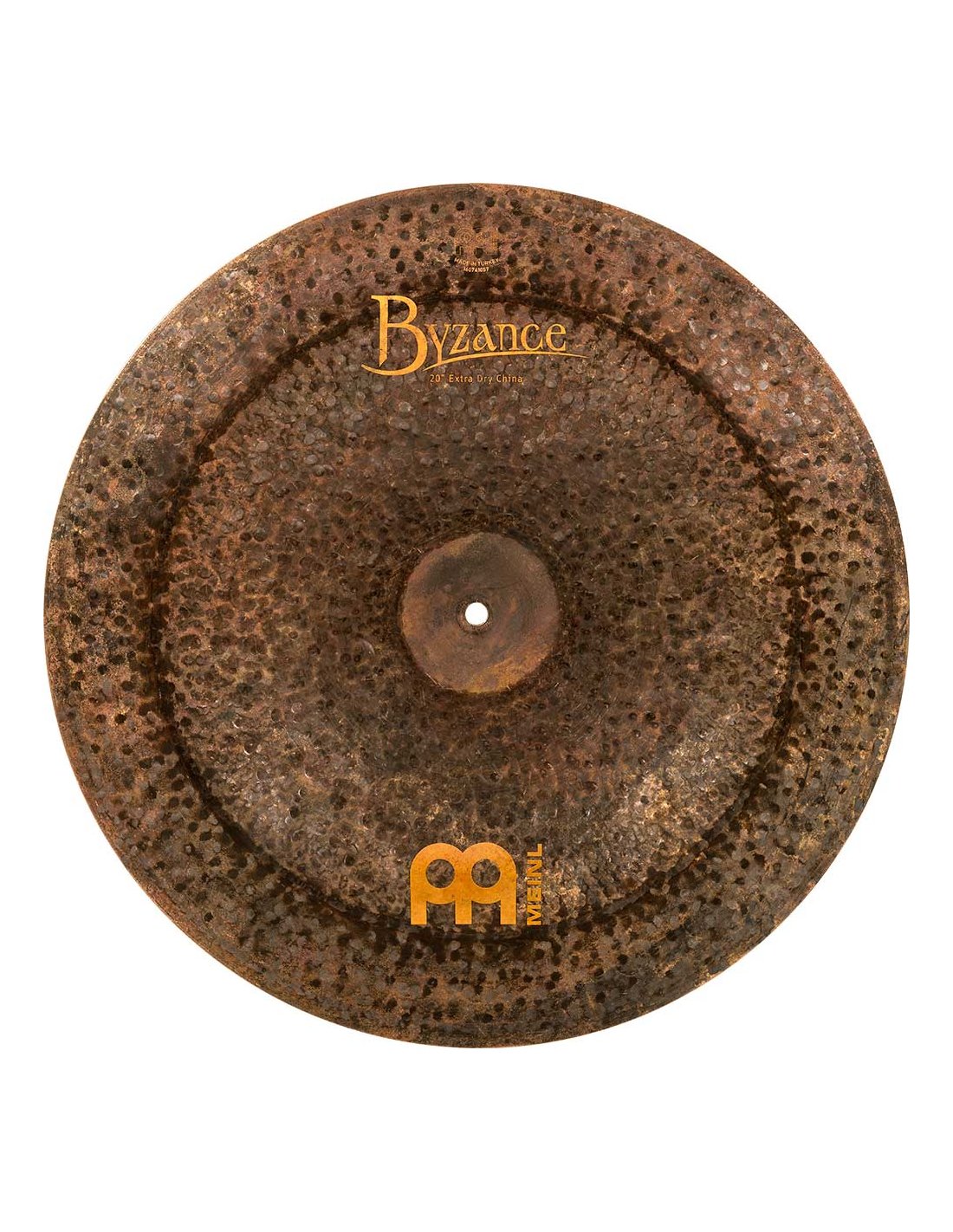'China 20'', Serie Byzance Extra Dry. I piatti della serie Byzance Extra Dry sono prodotti artigianalmente nella nostra fabbrica in Turchia dalle mani di specialisti e rispettando la tradizione in tutto il processo. Tutti i piatti sono realizzati con dischi in lega di bronzo B20. Diverse tecniche sono coinvolte nel processo, sia la martellatura che la tornitura. La finitura superiore non tornita e la finitura martellata di diametro maggiore insieme al fondo completamente tornito del piatto rendono la serie unica. Con un suono esplosivo, un po' trash e con poco sustain. Questi piatti hanno creato un nuovo universo sonoro completamente unico.