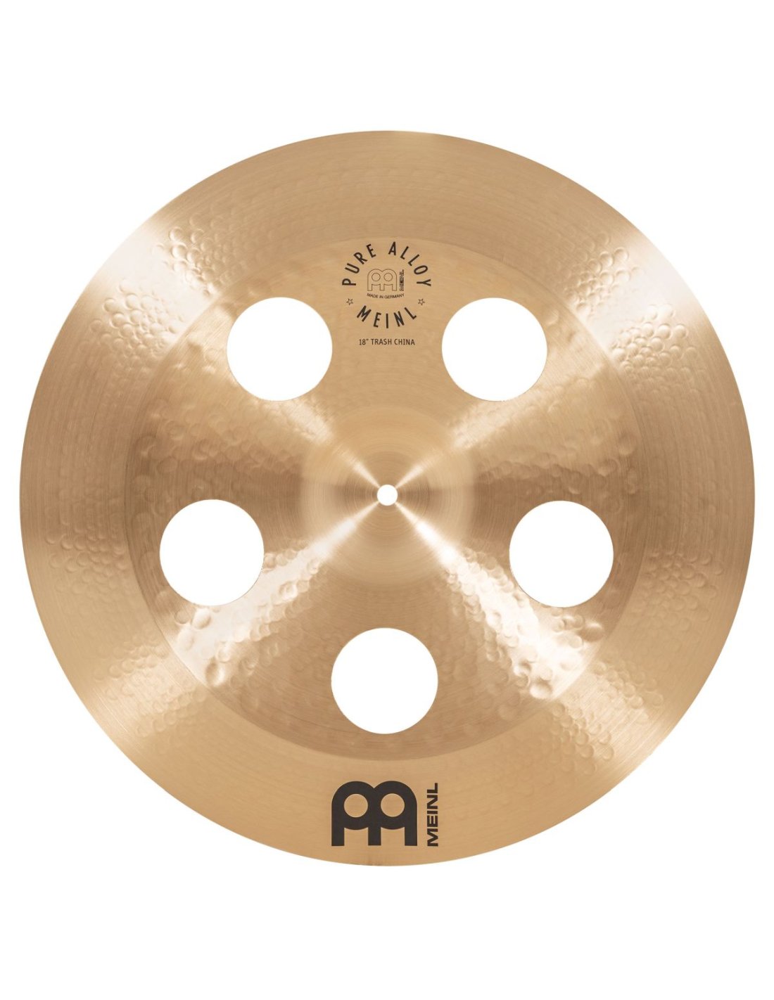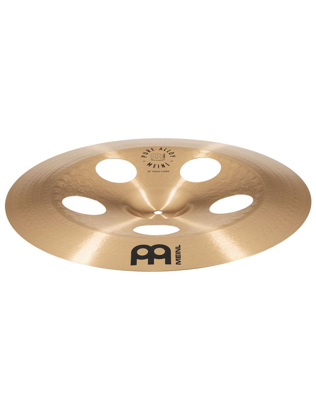 Il Trash China Pure Alloy presenta fori che aumentano la velocitˆ dellÕattacco e limitano il decay. In pi questo china prevede una risposta tonale unica, con pi alti nellÕalone, che rendono questo china pi esplosivo. I fori lo rendono inoltre perfetto per stacks, lasciando passare lÕaria tra i piatti.