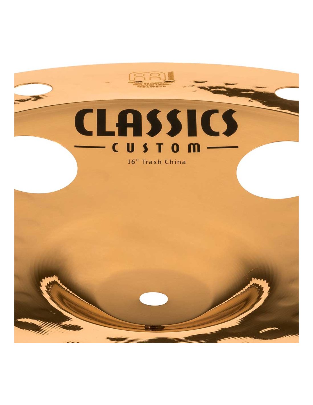 'Trash China 16'''' Serie Classics Custom. I piatti della serie Classics Custom sono prodotti meccanicamente in Germania con una lega B10. Il processo comporta varie tecniche, sia di pressatura che di battitura computerizzata. Oltre a questo ricevono una lacca lucida che dà loro una spettacolare finitura lucida.