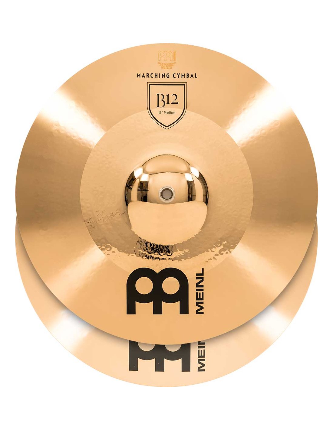 'Piatti crash professionali della serie B12 MA-B12-16M di peso medio e da 16''. I piatti da marcia della serie B12 sono prodotti meccanicamente in Germania con una lega B10. Sono modellati, poi accordati e calibrati tra loro.