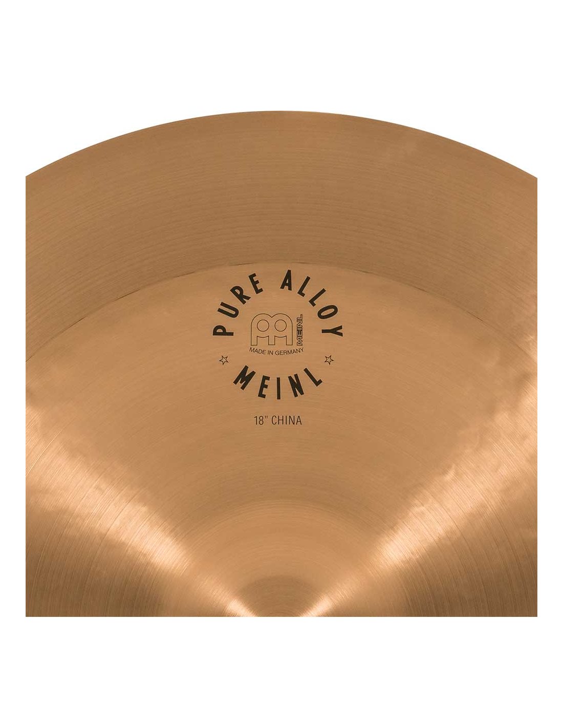 'China 18'', Serie Pure Alloy. I piatti della serie Pure Alloy di Meinl combinano le caratteristiche dei classici piatti europei con l'articolazione di un piatto moderno. Esplosivo, espressivo e veramente articolato. Queste caratteristiche li rendono perfetti per molti stili musicali come il pop, il rock, la fusion, la musica etnica e tutto ciò che sta in mezzo.