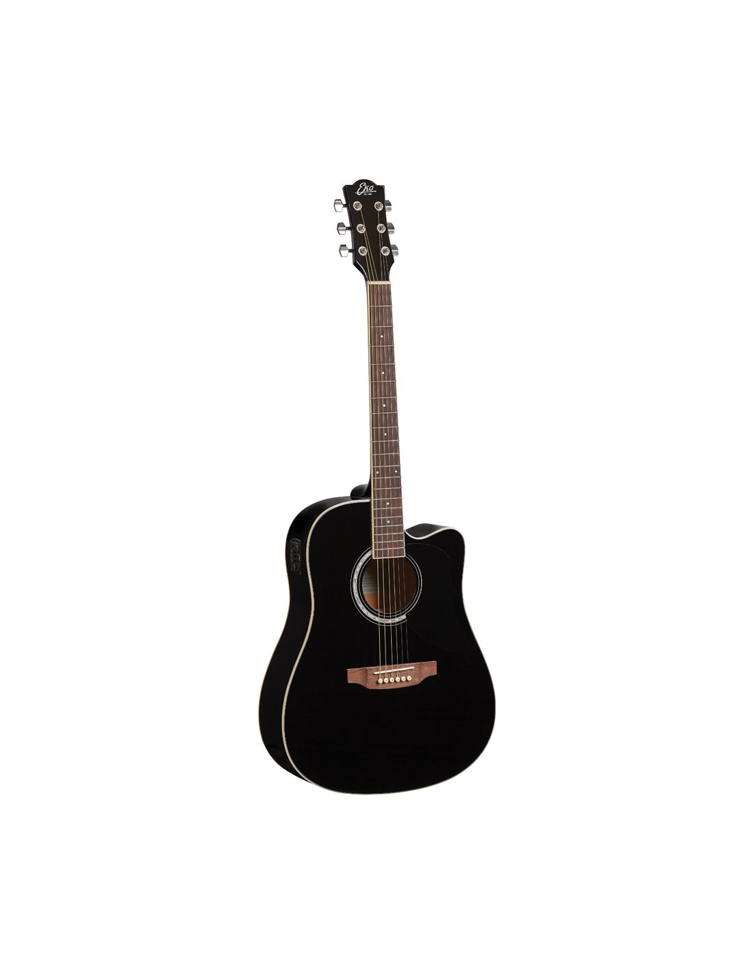 La Ranger CW EQ Black è la chitarra acustica elettrificata con forma Dreadnought spalla mancante di casa Eko Guitars, amplificata con sistema Eko SE30. Si presenta con Top in Abete, fasce e fondo in Linden, manico in Okoumè e tastiera in South American Roupanà. Una chitarra acustica dal costo contenuto, perfetta per un utilizzo live, per gli studenti e per chi decide di iniziare lo studio della chitarra con uno strumento affidabile e performante.