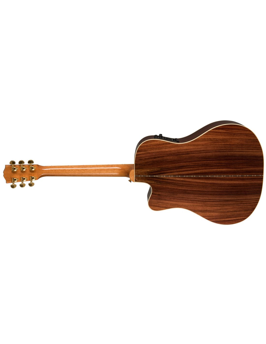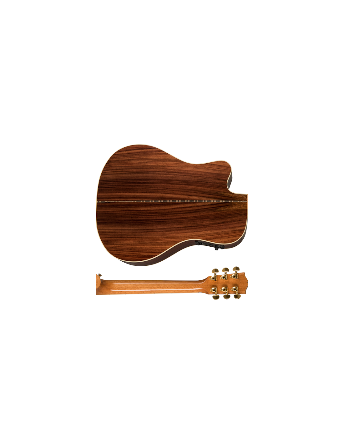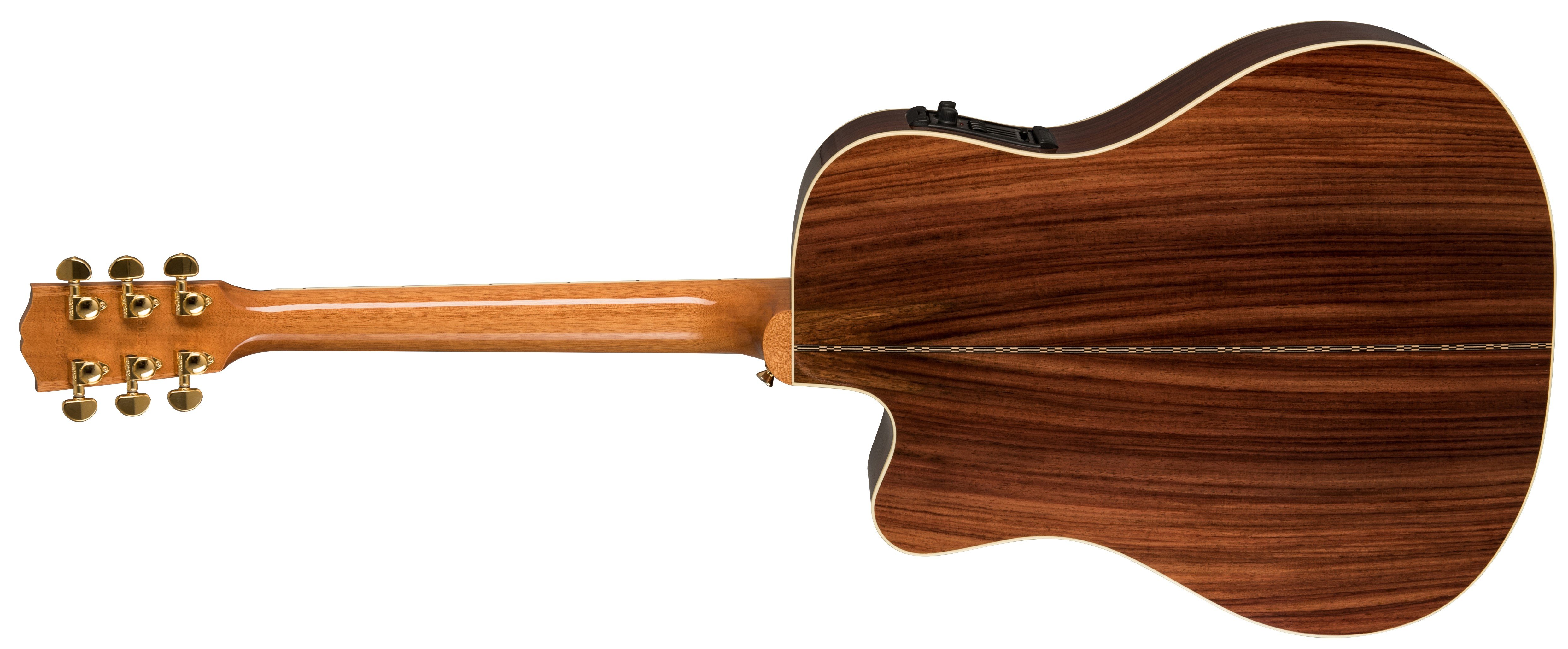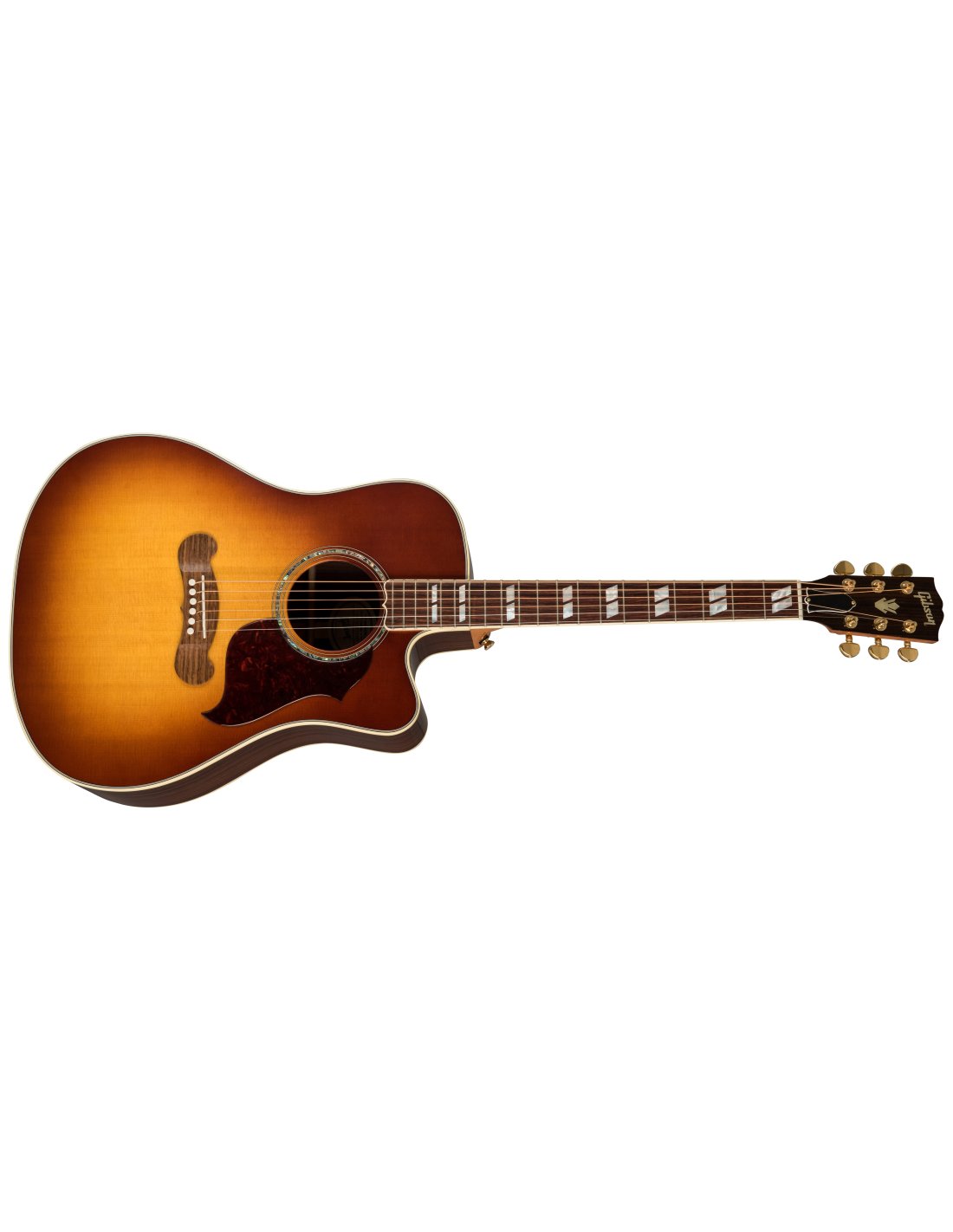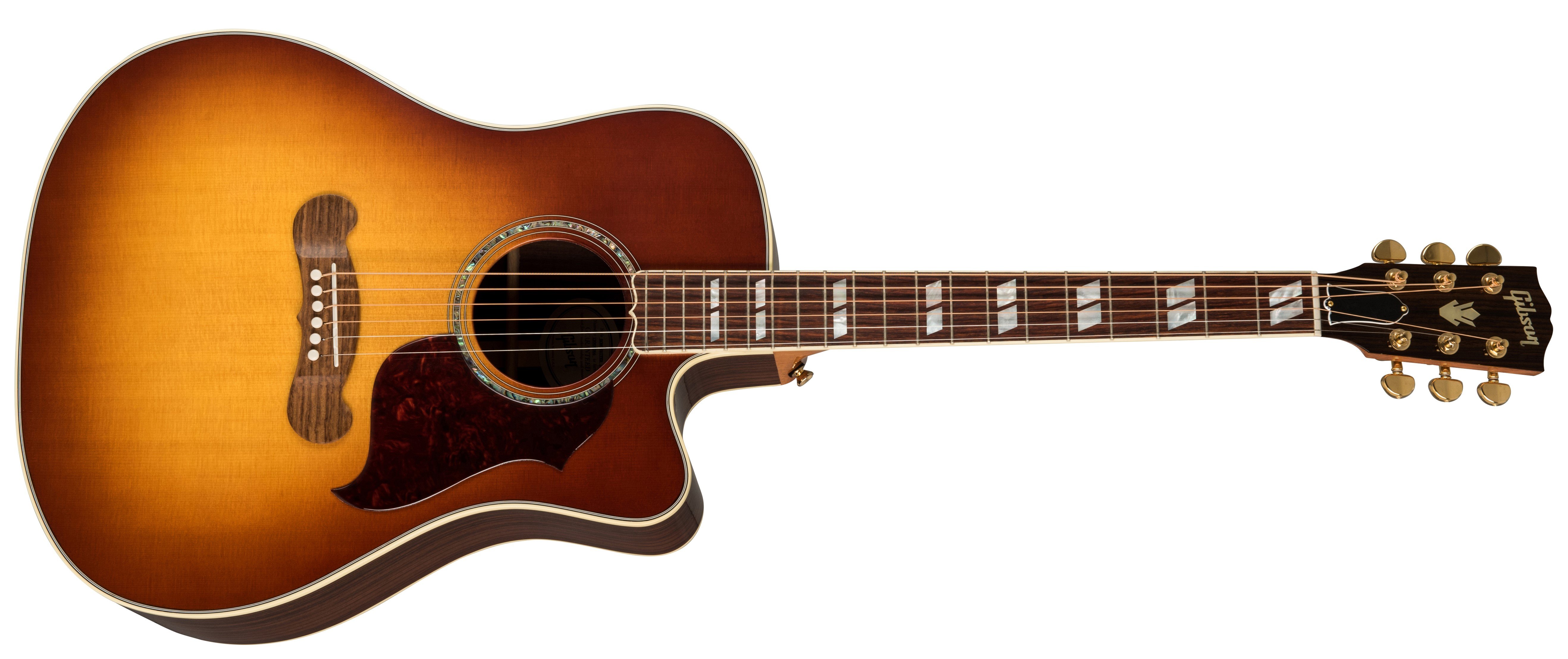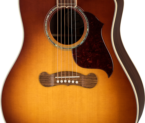 GIBSON SONGWRITER STANDARD EC ROSEWOOD BURST è una chitarra acustica elettrificata, formato Dreadnought Square Shoulder, modello Gibson Modern Acoustic Songwriter Standard EC Rosewood, con corpo, fondo e fasce in Palissandro indiano massello e top in Abete Sitka laminato a finitura Gloss Nitrocellulose Lacquer, manico in mogano a profilo Rounded, tastiera in Palissandro a raggio 12" con 20 tasti Standard e intarsi Mother-of-pearl Parallelogram, capotasto in Tusq, hardware Gold, meccaniche Grover Rotomatic con chiavi Kidney e ponte Custom Line in palissandro con selletta in Tusq. L'elettronica consiste in un preamplificatore Fishman Prefix Plus-T con pickup Piezo sottosella e controlli di Volume, Tono, e accordatore integrato.