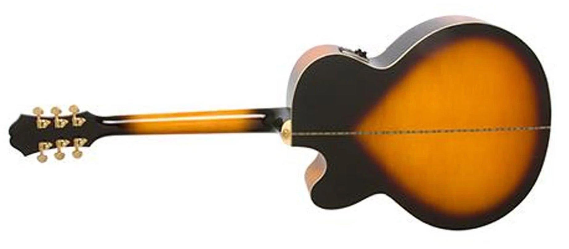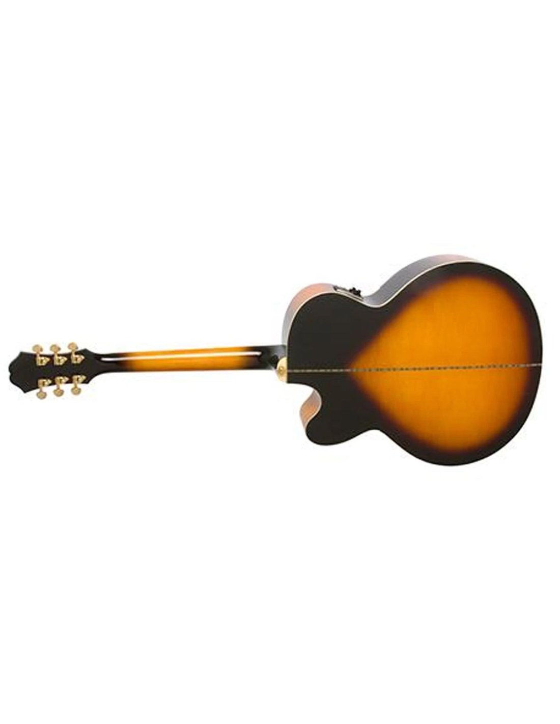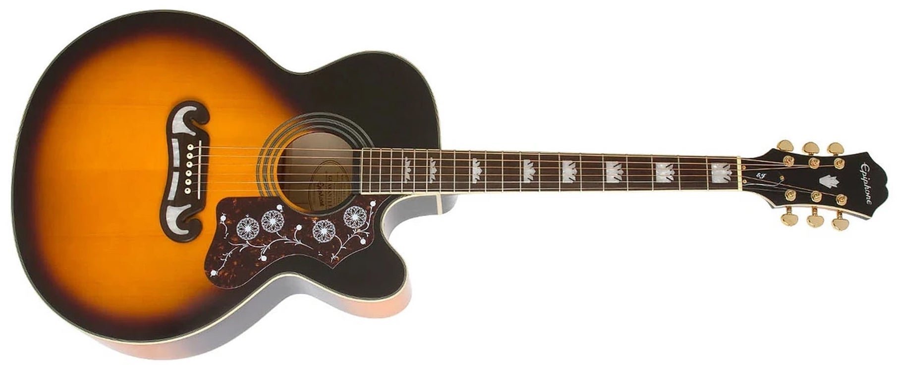 EPIPHONE J-200EC STUDIO VINTAGE SUNBURST è una chitarra acustica elettrificata modello Epiphone J-200EC Studio a formato Super Jumbo a spalla mancante, con corpo e fondo in acero laminato, Top in abete Sitka massello, manico in acero duro a profilo 1960's SlimTaper D-shape, tastiera in Pau ferro a raggio 12" con 20 tasti Medium jumbo ed intarsi a corona in madreperla, capotasto in PVC, Truss Rod a doppia azione, meccaniche Grover Rotomatic 18:1 e ponte "Moustache" in Pau Ferro. L'elettronica consiste in un preamplificatore Fishman Presys con controllo del volume, interruttore di fase, contour e accordatore incorporato con display LED, e pickup sotto sella Fishman Sonicore.