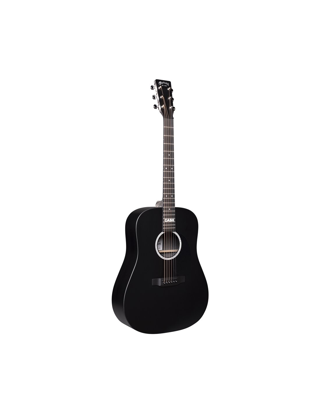 MARTIN DX JOHNNY CASH. Chitarra acustica elettrificata MARTIN DX JOHNNY CASH con finitura Jett Black. Le caratteristiche tecniche includono corpo formato Dreadnought D-14 Fret con top, fondo e fasce in laminato HPL nero, manico in laminato di betulla nera profilo Performing Artist High-Performance Taper, tastiera in FSC® Certified Richlite® con 20 tasti, intarsi Inlaid Stars e logo CASH, trussrod regolabile, capotasto e sellette in osso. L'elettronica consiste in un preamp Fishman® MX con pickup in buca. Presenta inoltre ponte Modern Belly - Drop in Saddle in TUSK, meccaniche Chrome Enclosed Gear. In dotazione custodia morbida Martin.