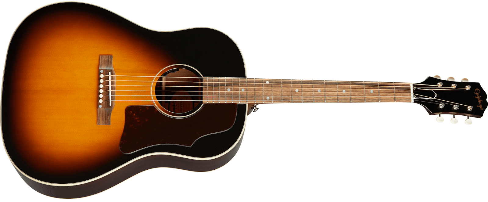 Chitarra Acustica Elettrificata Epiphone Masterbilt J-45 colore Aged Vintage Sunburst Gloss. La Epiphone Masterbilt J-45 è una chitarra acustica elettrificata a 6 corde. Tavola armonica in Abete Sitka massello. Fondo e fasce in Mogano massello. Manico in Mogano, con profilo Rounded C. Tastiera in Indian Laurel, raggio 12", 20 tasti Medium Jumbo. L'elettronica consiste in un pickup Fishman Sonicore e un preamplificatore Fishman Sonitone, con controlli di Volume e Tono alla buca. Meccaniche Epiphone Deluxe nickelate.