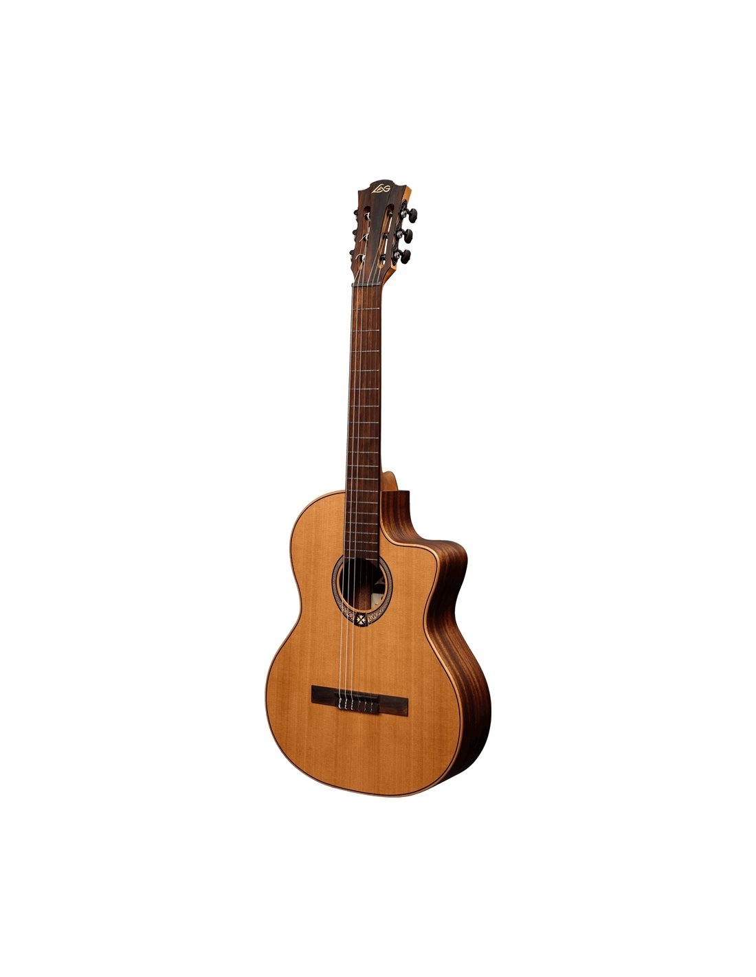 Corpo Classical cutaway - Top massello in cedro rosso - Fondo e fasce in khaya laminato - Hardware Black Satin - Finitura satinata - Ponte in Brownwood (pinus radiata) - Manico in Khaya - Tastiera in Brownwood (pinus radiata) - Radius Flat - Scala 650 mm - Capotasto e selletta in Graphite - Meccaniche Classical - Preamp Fishman clasica 2