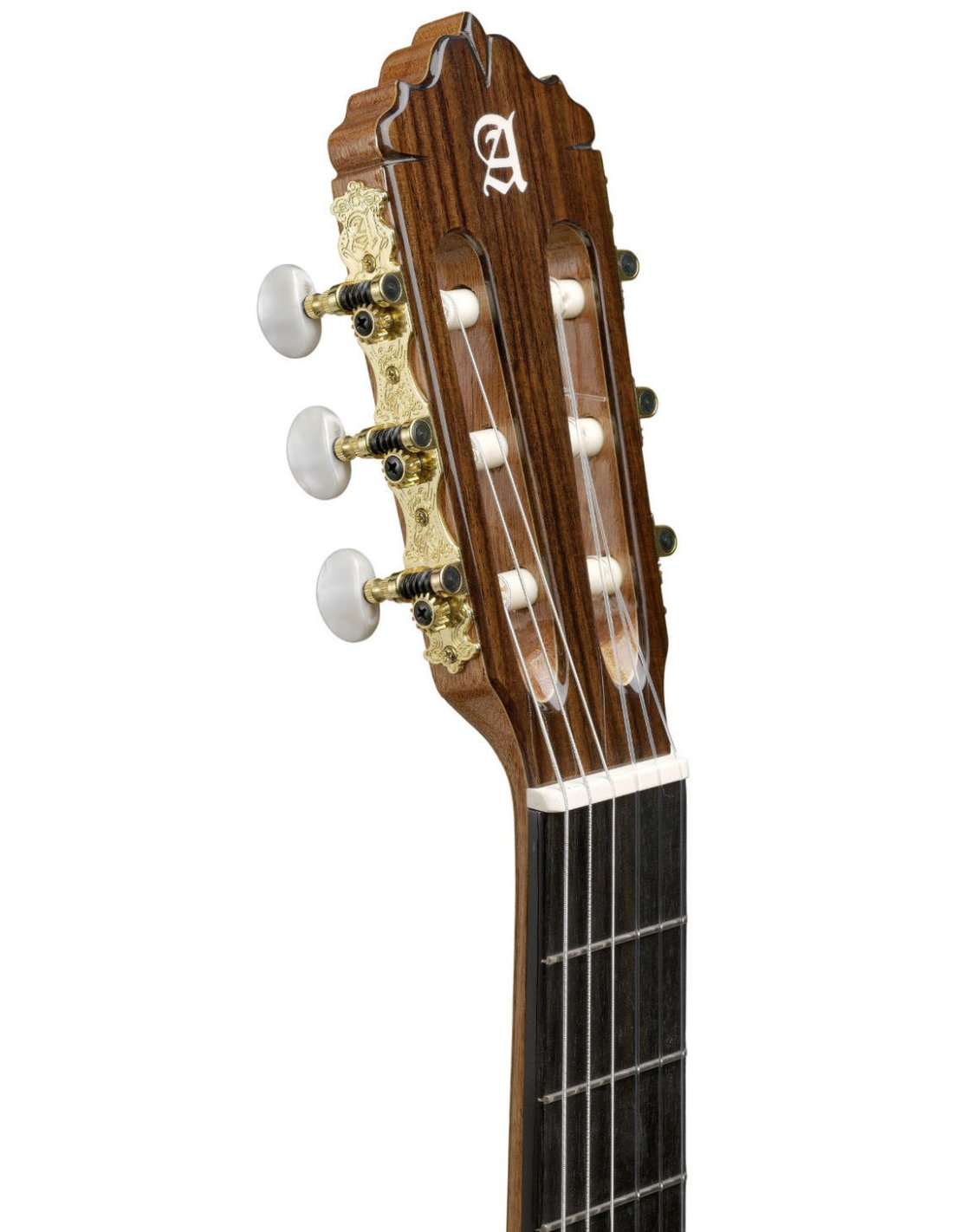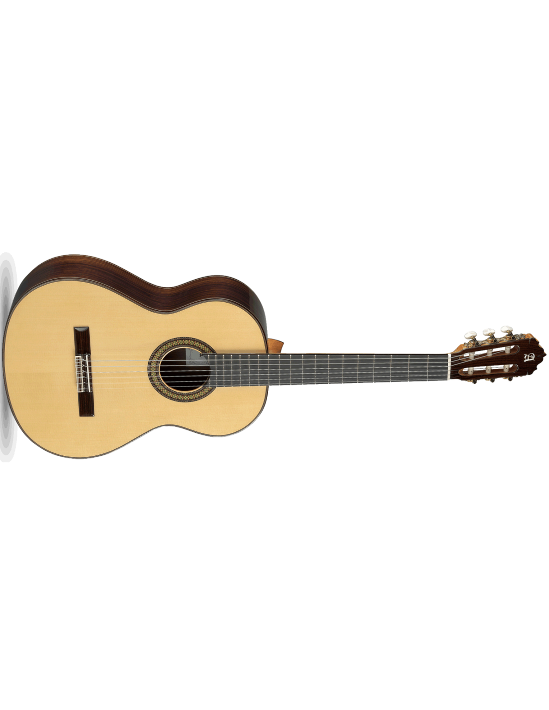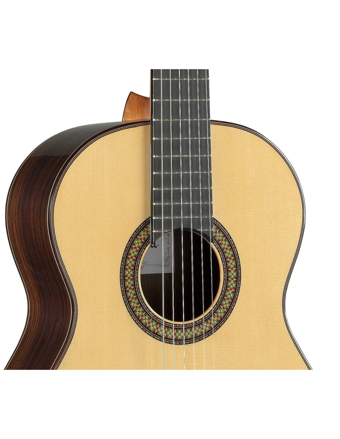 ALHAMBRA 7P-CWE è una chitarra classica, modello 7P-CWE, con top in Abete massello, fondo e fasce in Palissandro indiano massello, manico in Mogano rinforzato con fascia centrale in Ebano, tastiera Ebano, capotasto da 52mm in Melamina, meccaniche Luxury Gold Plated e ponte in Sapele con selletta in Melamina. Include borsa a tracolla Alhambra Soft Classical Deluxe Gig Bag.