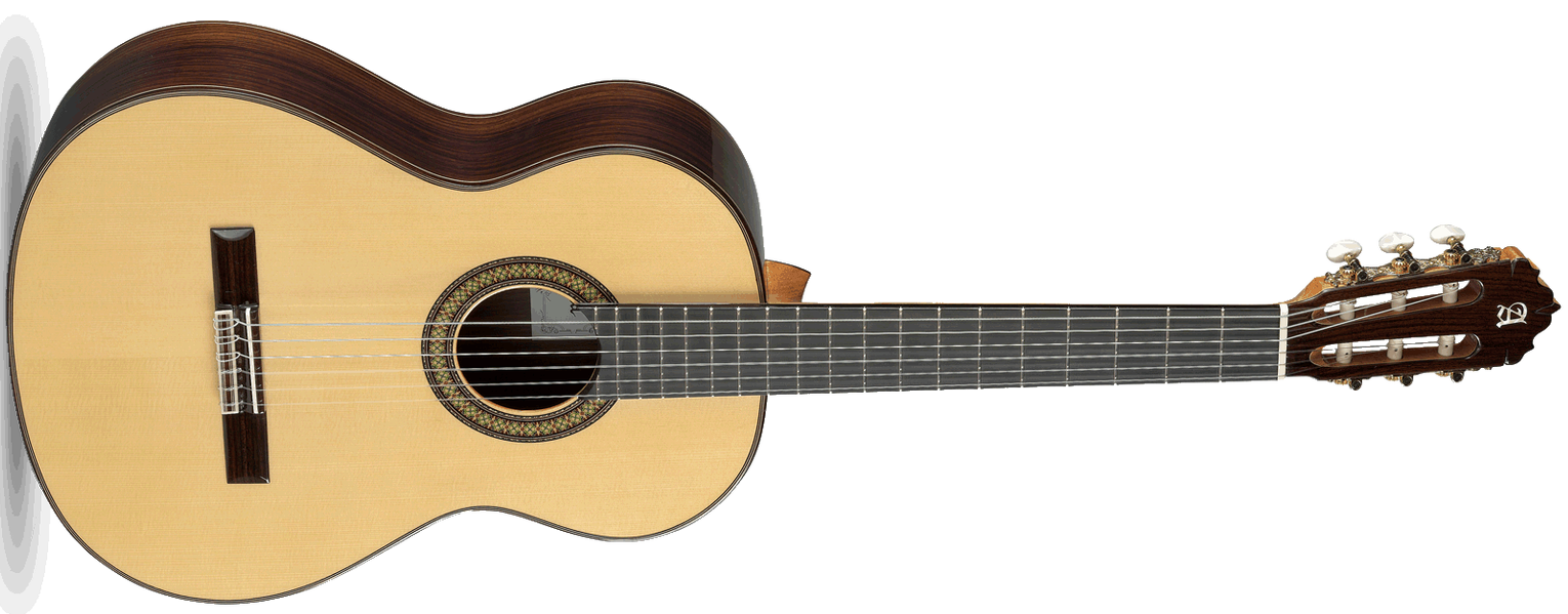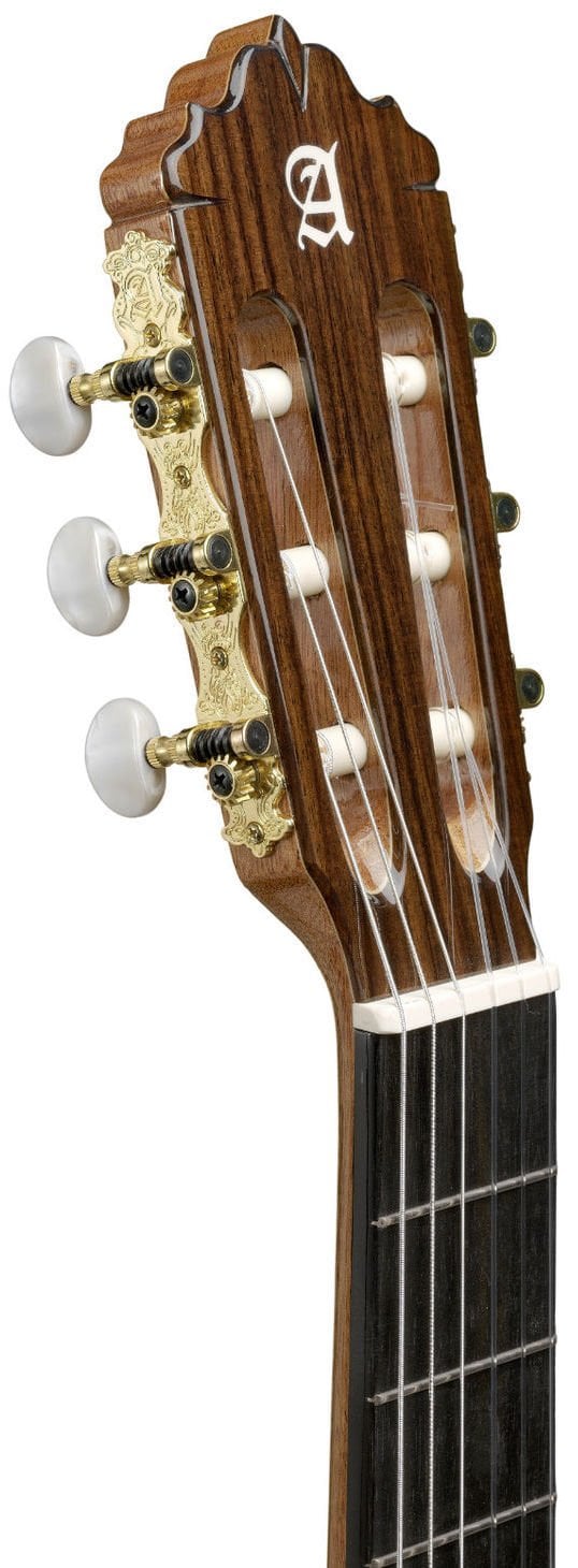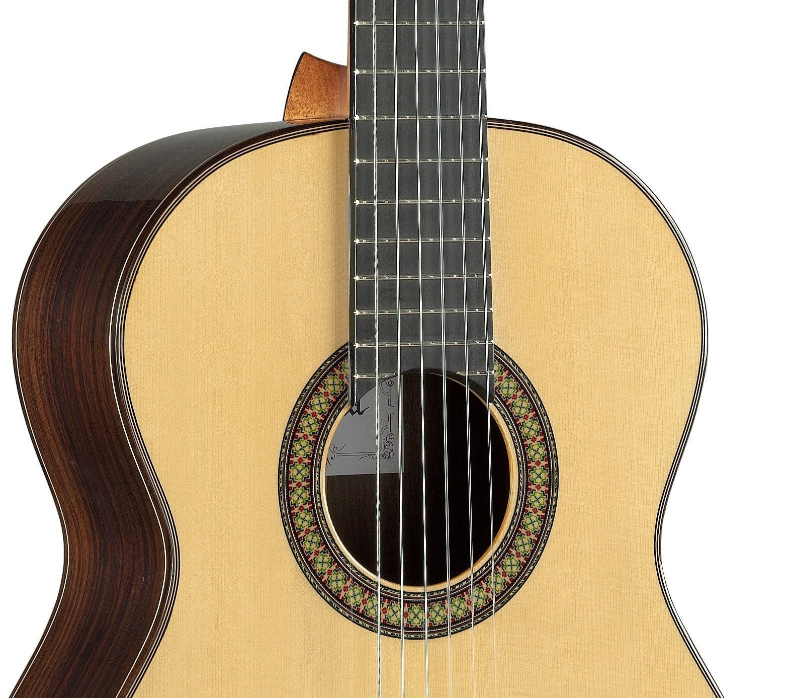 ALHAMBRA 7P-CWE è una chitarra classica, modello 7P-CWE, con top in Abete massello, fondo e fasce in Palissandro indiano massello, manico in Mogano rinforzato con fascia centrale in Ebano, tastiera Ebano, capotasto da 52mm in Melamina, meccaniche Luxury Gold Plated e ponte in Sapele con selletta in Melamina. Include borsa a tracolla Alhambra Soft Classical Deluxe Gig Bag.