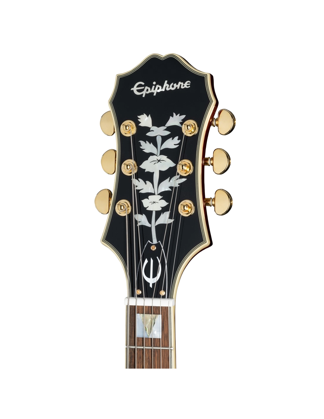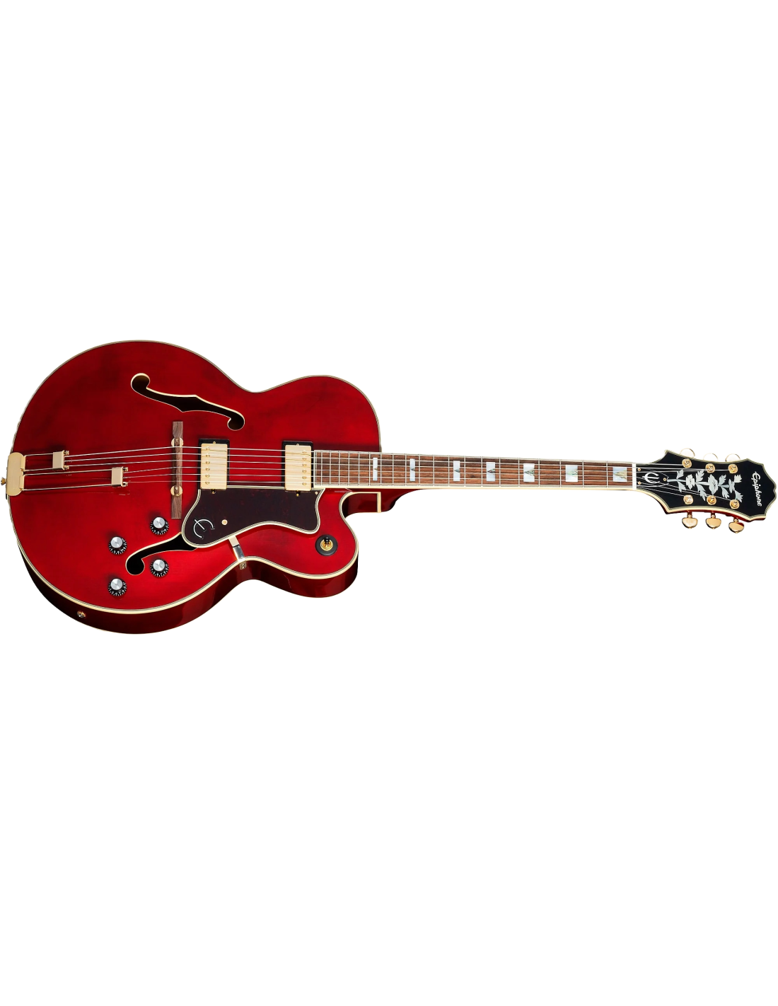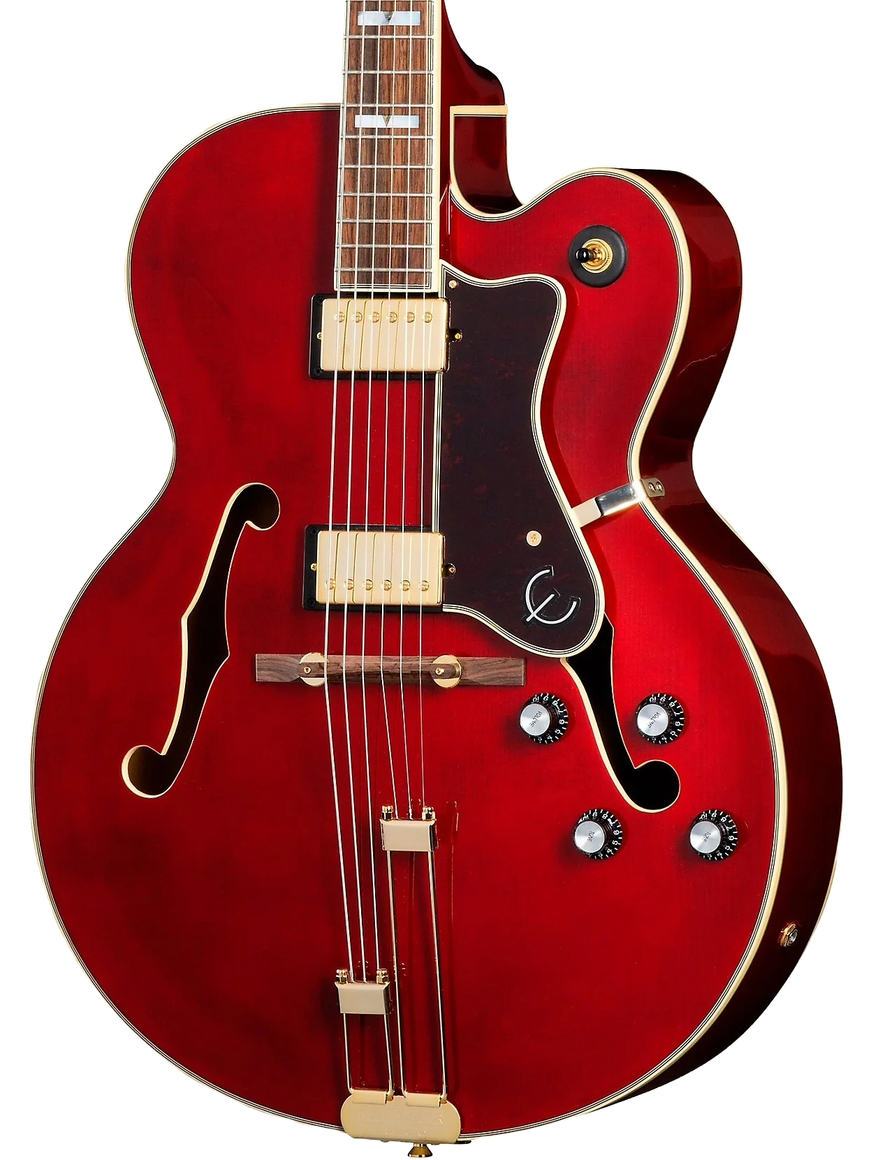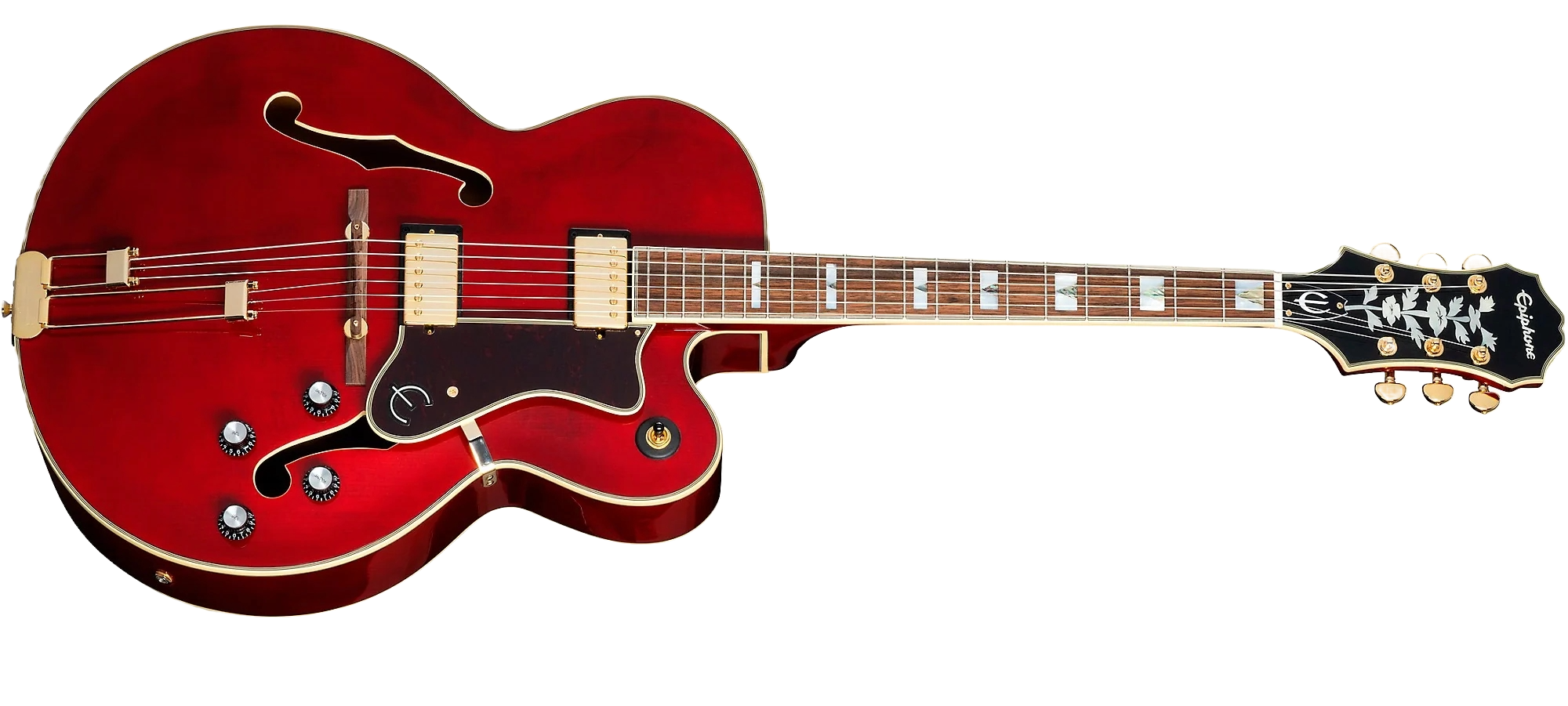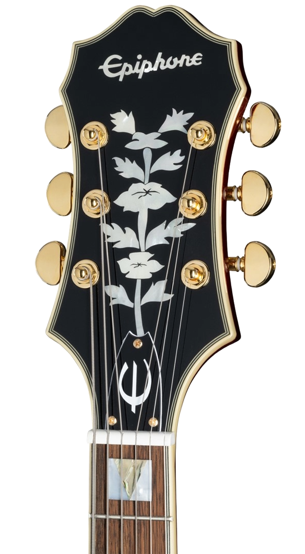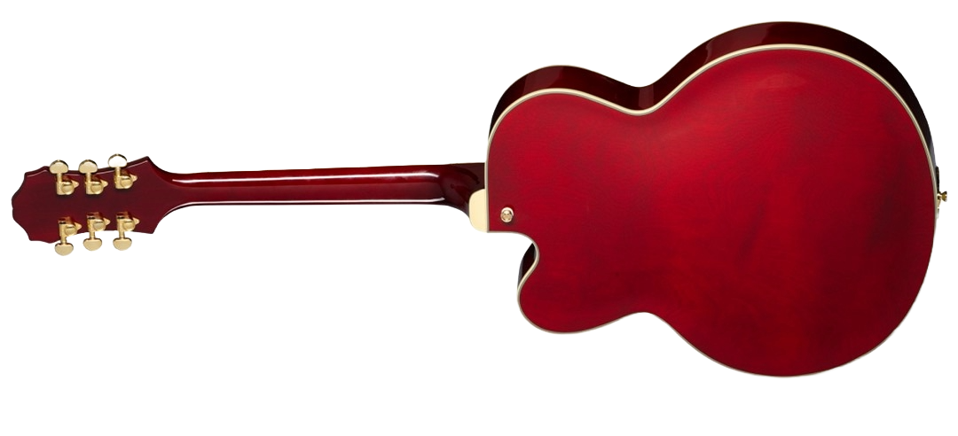 EPIPHONE BROADWAY WINE RED + BAG è una chitarra semiacustica Hollowbody modello Archtop Broadway con corpo in acero mutistrato, Top in abete laminato, fondo fasce in acero multistrato, manico in acero a profilo SlimTaper 60s C, tastiera in alloro indiano a raggio 12" con 20 tasti Medium Jumbo ed intarsi rettangolari in madreperla con triangolo in abalone, capotasto in Graph Tech, hardware gold, meccaniche Wilkinson e ponte Floating regolabile con selletta in Pau Ferro e cordiera trapezoidale Frequensator con finitura dorata stile vintage. L'elettronica consiste in 2 pickup humbucker Alnico Classic PRO con copri pickup dorati, 2 controlli volume, 2 controlli tono e selettore pickup a 3 posizioni. Include custodia morbida Epiphone Premium