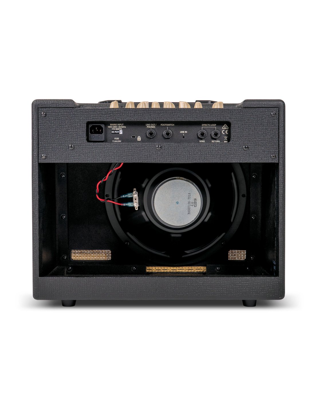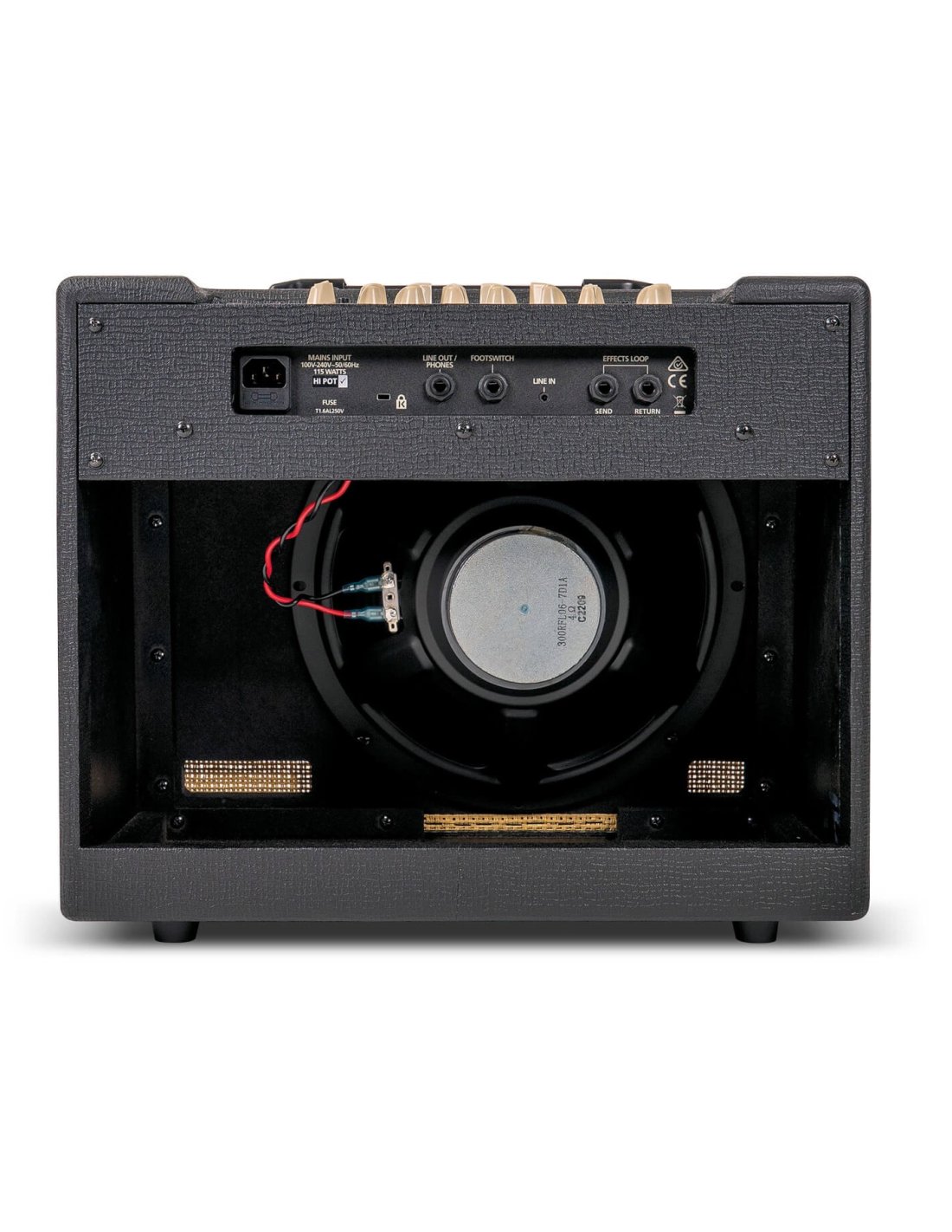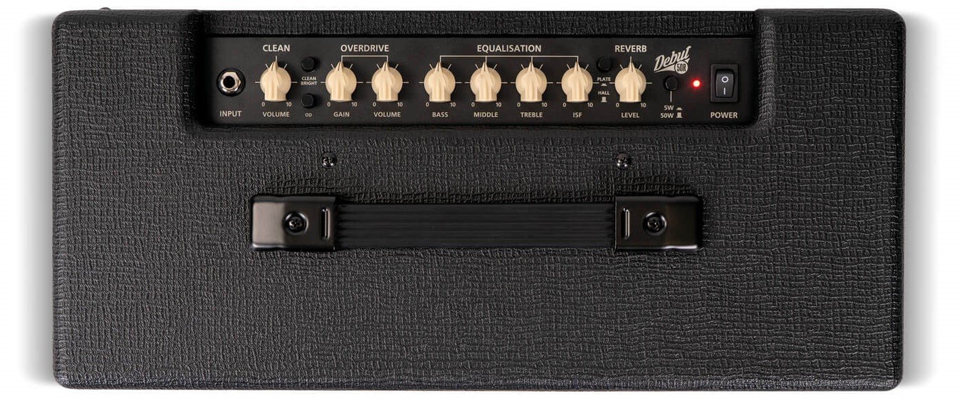 Il Debut 50R Cream Black è un amplificatore combo per chitarra elettrica della Blackstar. È dotato di un altroparlante da 12'', una potenza di 50W riducibile a 5W, preamplificatore Mosfet, due canali per suono pulito e overdrive, un equalizzatore a 3 bande, riverbero, loop effetti e line out con simulazione speaker.
