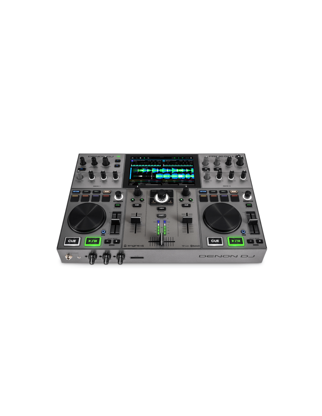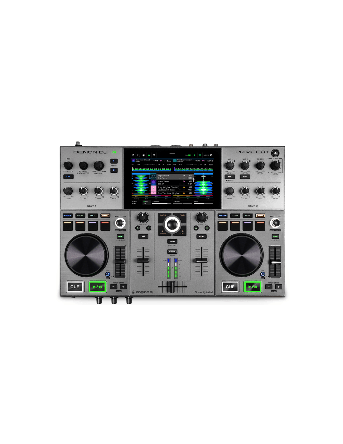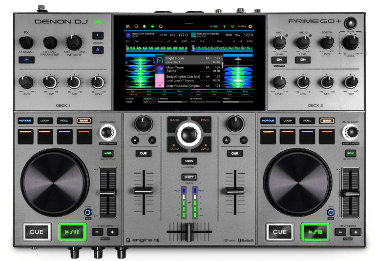 DENON DJ PRIME GO + è una console DJ Standalone a 2 Deck con Display Multi touch da 7" e batteria integrata. Le caratteristiche tecniche includono, Standalone Engine DJ OS per un utilizzo senza computer, Display Touch HD da 7" Multi-Touch per una navigazione fluida, preview forme d’onda, ricerca, filtri e gestione libreria, batteria ricaricabile integrata per un utilizzo fino a 4 ore consecutive, 2 Deck con Jogwheel in Alluminio da 3.5" reattivi con anello LED per il cue visivo, interfaccia audio integrata a 24-bit / 48kHz, Wi-Fi e connessione Ethernet integrati per Streaming diretto da TIDAL, Beatport LINK, SoundCloud GO+, Dropbox e altri, 4 FX indipendenti per deck con controllo in tempo reale e modalità touch, sezione Mixer a 2 canali con EQ a 3 bande, filtro passa-basso/alto, cue split e preascolto in cuffia. Presenta uscita Master XLR bilanciata, Booth Out su TRS, uscita RCA, input Microfono Combo Jack/XLR, registrazione Diretta su USB tramite slot USB-B/USB-A o SD, compatibilità con librerie Engine DJ / Serato / rekordbox (via Engine DJ Desktop)