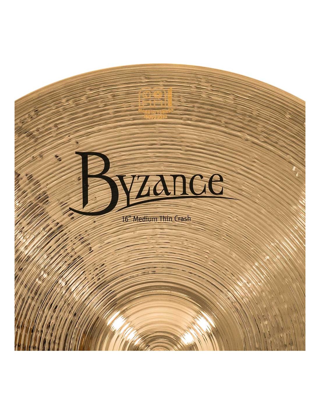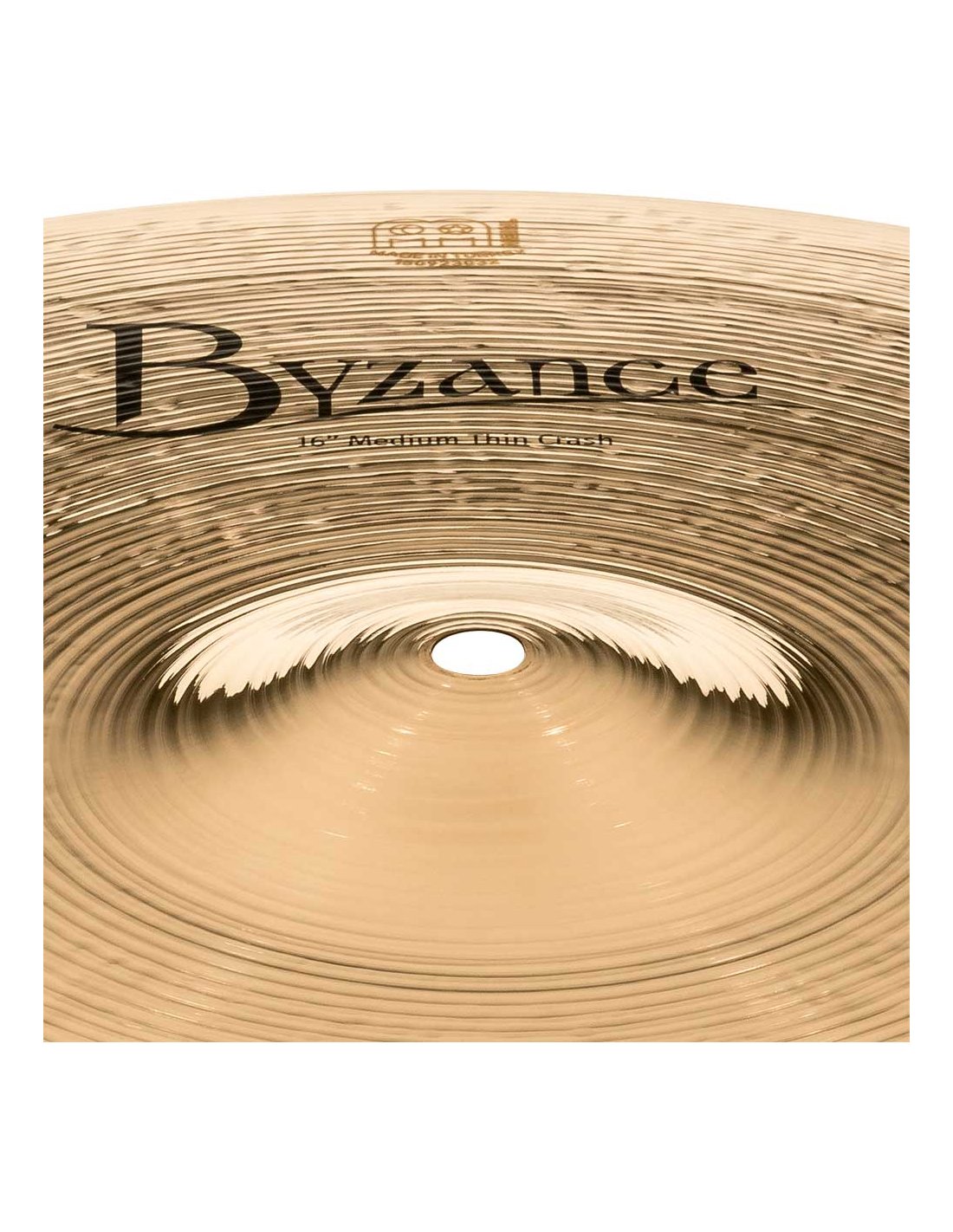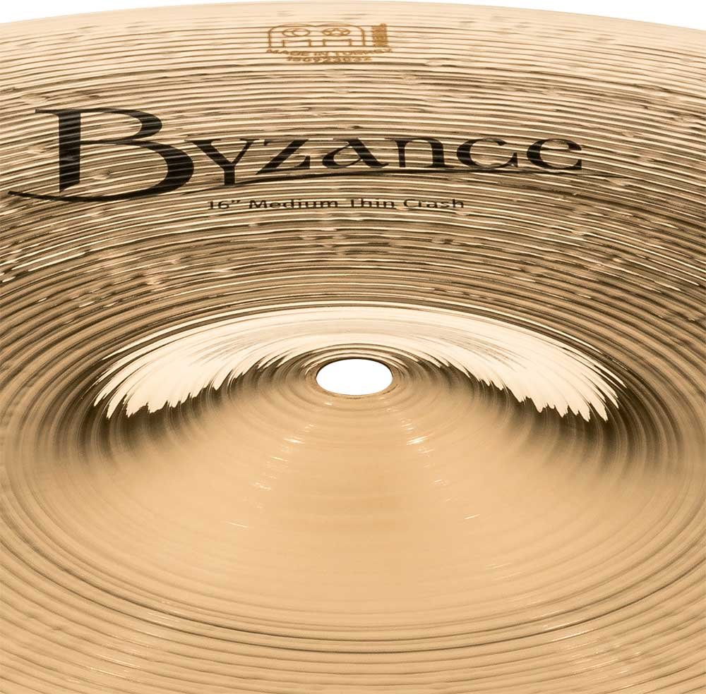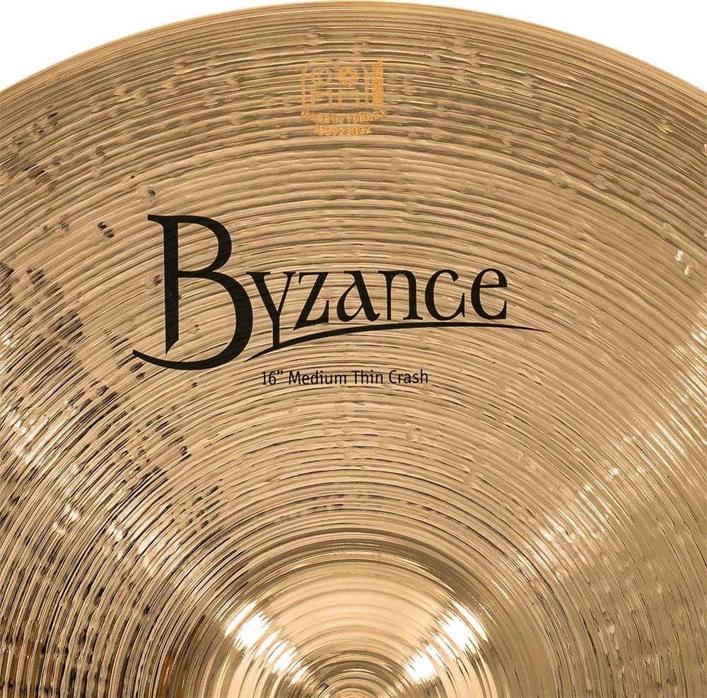 'Crash 16'' Medium Thin, Serie Byzance Brilliant. I piatti della serie Byzance Brilliant sono realizzati artigianalmente nella nostra fabbrica in Turchia da specialisti e rispettando la tradizione in tutto il processo. Tutti i piatti sono realizzati con dischi in lega di bronzo B20. Varie tecniche sono coinvolte nel processo, sia la martellatura che la tornitura. Oltre a questo ricevono una laccatura lucida che conferisce loro un suono più esplosivo e una spettacolare finitura lucida.