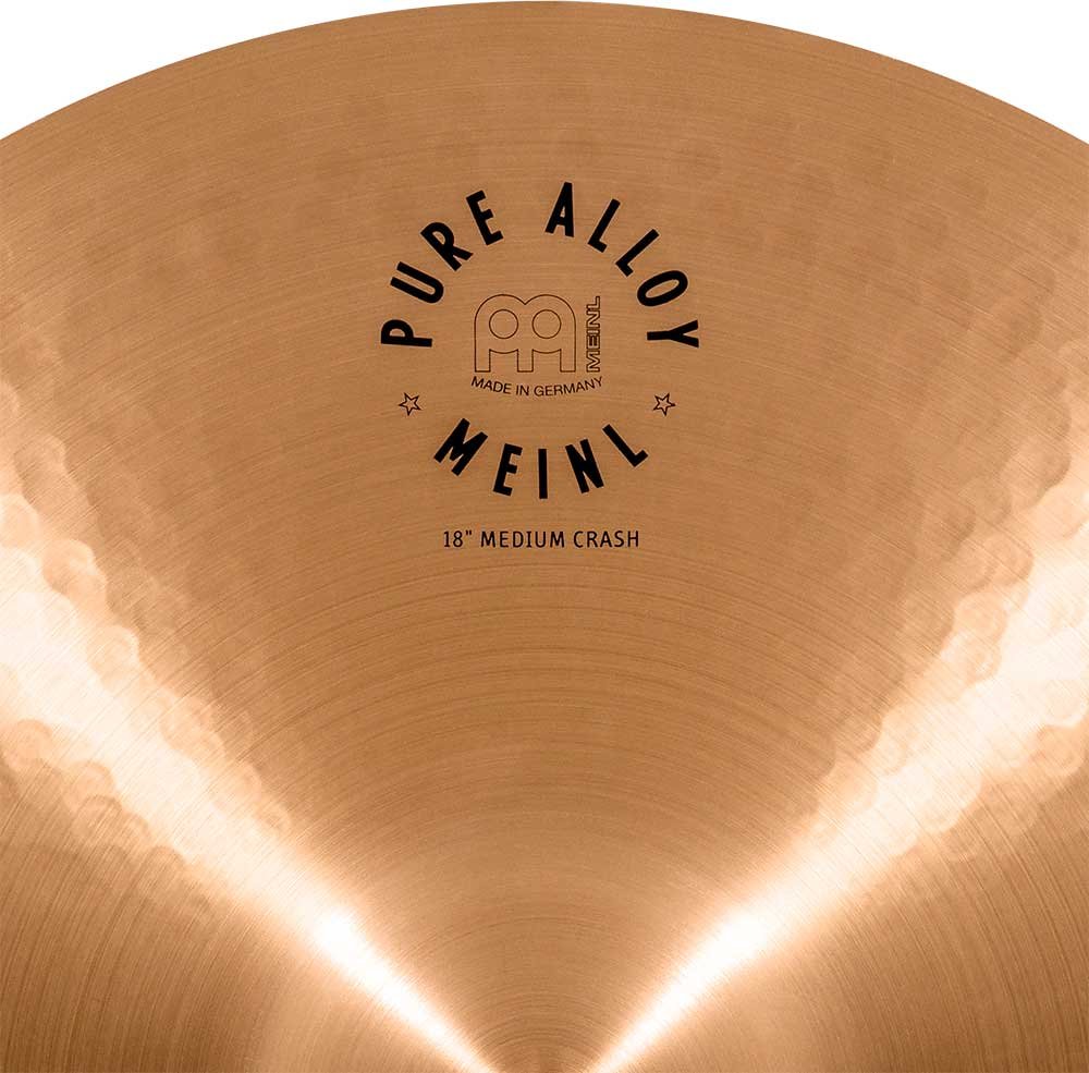 'Crash 18'' Medio, Serie Pure Alloy. I piatti della serie Pure Alloy di Meinl combinano le caratteristiche dei classici piatti europei con l'articolazione di un piatto moderno. Esplosivo, espressivo e veramente articolato. Queste caratteristiche li rendono perfetti per molti stili musicali come il pop, il rock, la fusion, la musica etnica e tutto ciò che sta in mezzo.