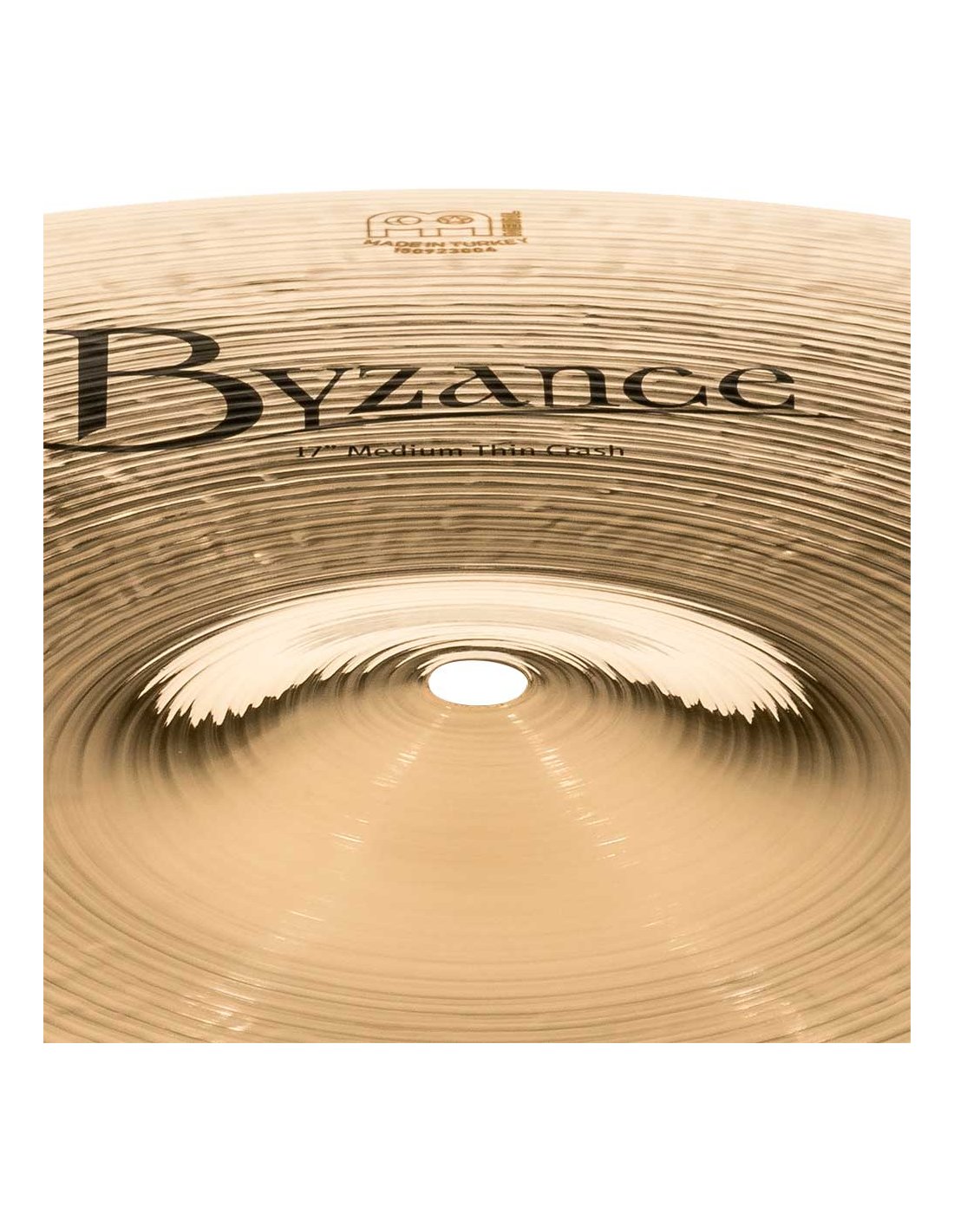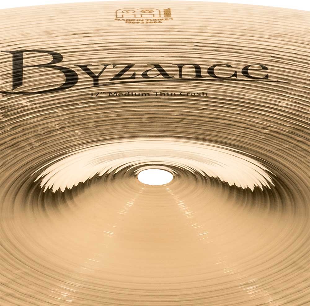 'Crash 17'' Medium Thin, Serie Byzance Brilliant. I piatti della serie Byzance Brilliant sono realizzati artigianalmente nella nostra fabbrica in Turchia da specialisti e rispettando la tradizione in tutto il processo. Tutti i piatti sono realizzati con dischi in lega di bronzo B20. Varie tecniche sono coinvolte nel processo, sia la martellatura che la tornitura. Oltre a questo ricevono una laccatura lucida che conferisce loro un suono più esplosivo e una spettacolare finitura lucida.