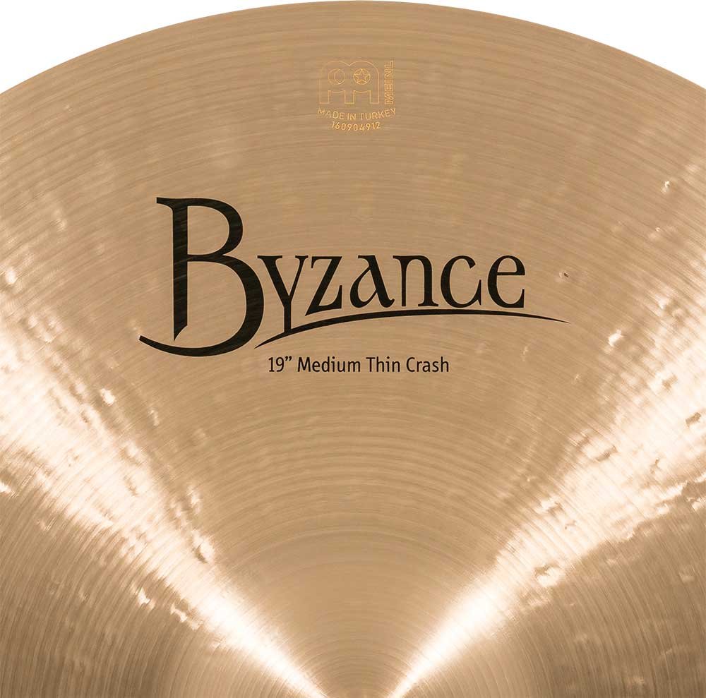 'Crash 19'' Medium Thin, Serie Byzance Traditional. I piatti della serie Byzance Traditional sono prodotti artigianalmente nella nostra fabbrica in Turchia da specialisti e rispettando la tradizione in tutto il processo. Tutti i piatti sono realizzati con dischi in lega di bronzo B20. Varie tecniche sono coinvolte nel processo, sia la martellatura che la tornitura. La finitura tradizionale dona alla serie il classico suono del piatto turco che sentiamo da oltre un secolo.