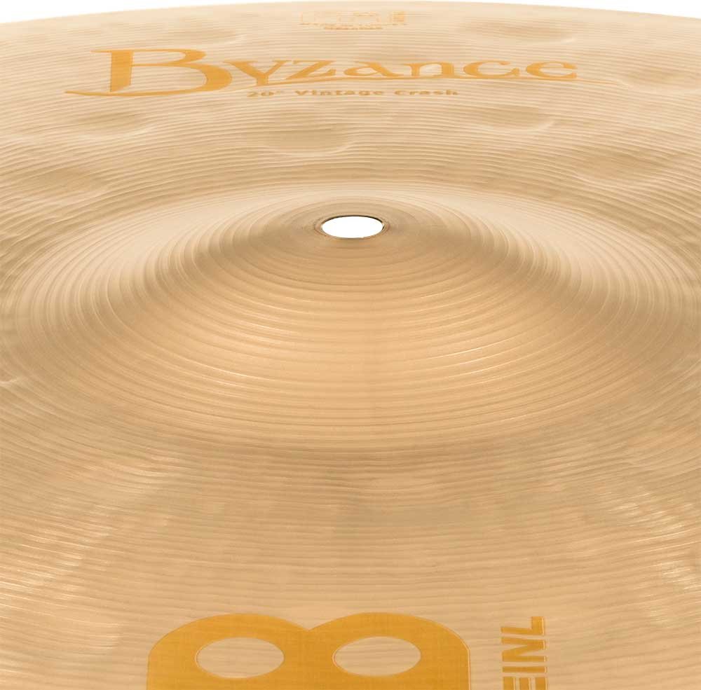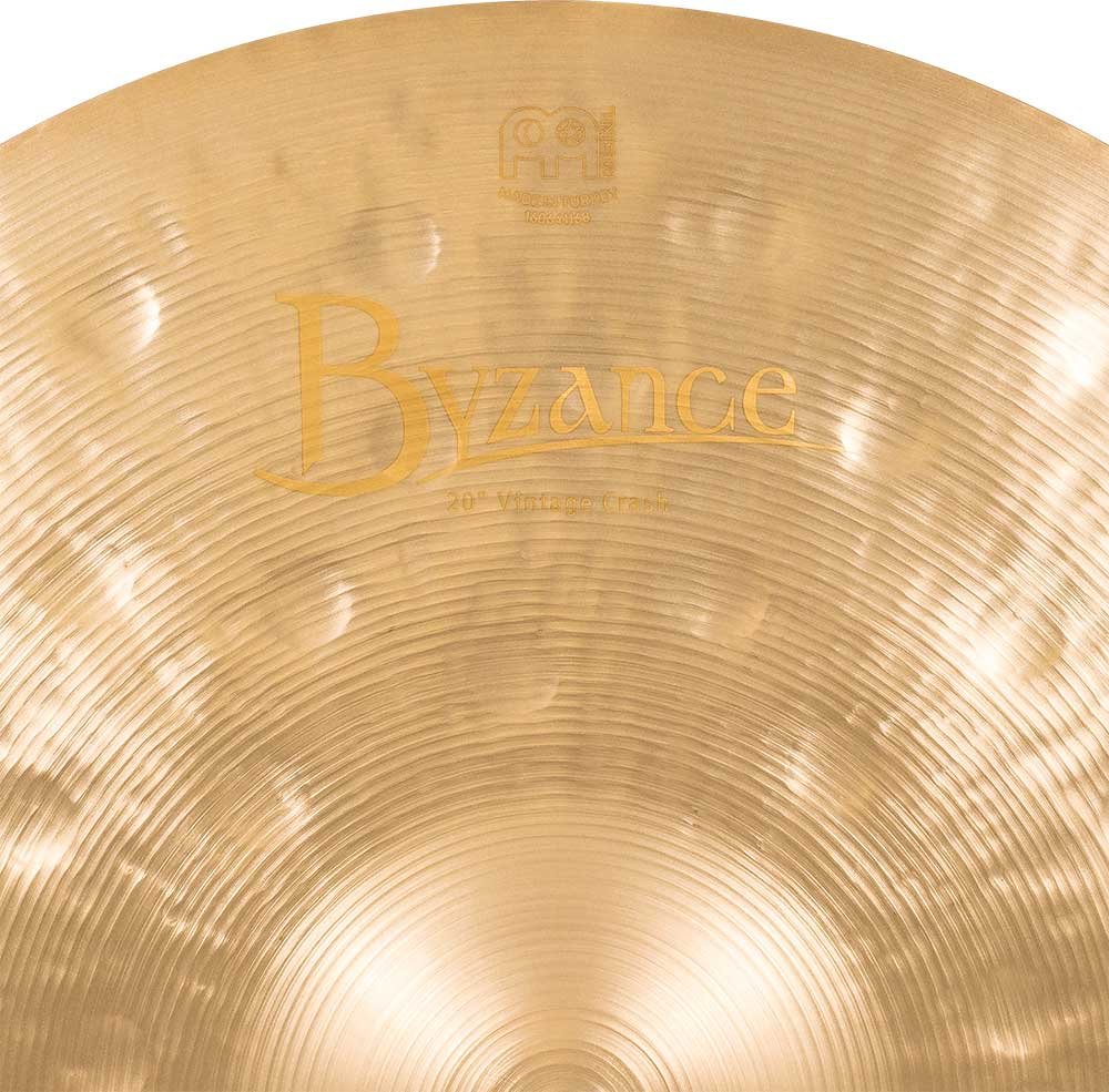 'Crash 20'', Serie Byzance Vintage. I piatti della serie Byzance Vintage sono prodotti artigianalmente nella nostra fabbrica in Turchia dalle mani di specialisti e rispettando la tradizione in tutto il processo. Tutti i piatti sono realizzati con dischi in lega di bronzo B20. Diverse tecniche sono coinvolte nel processo, sia la martellatura che la tornitura. La finitura Vintage dà ad ogni piatto un suono medio che ricorda piatti molto più antichi. Davvero gradevole nel mix.