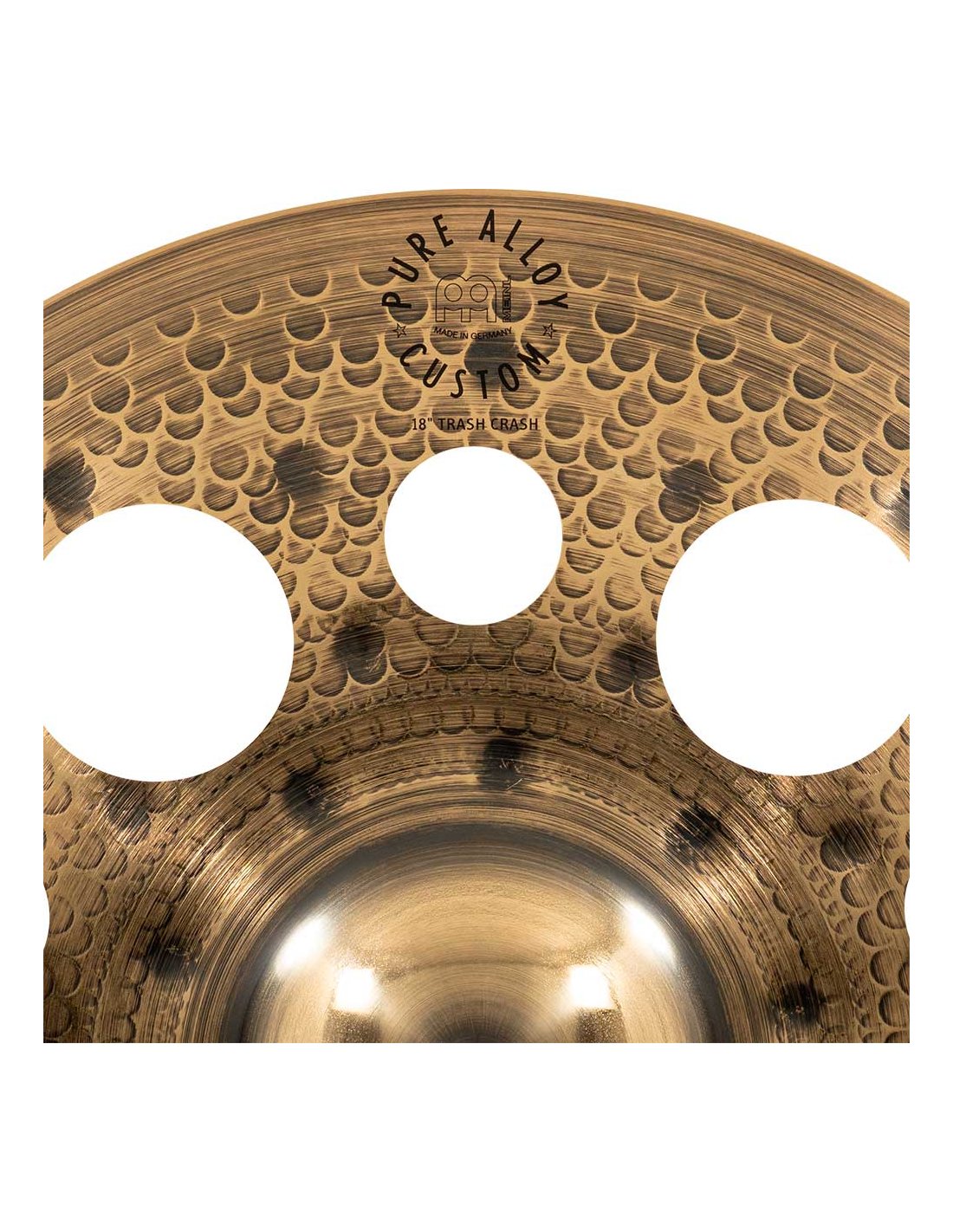 'Trash Crash 18'', Serie Pure Alloy Custom. I piatti della serie Pure Alloy Custom di Meinl combinano le caratteristiche dei classici piatti europei con l'articolazione di un piatto moderno. Con una parte superiore martellata pronunciata e una parte inferiore completamente tornita e lucida, sono espressivi e molto articolati. Queste caratteristiche li rendono perfetti per molti stili musicali come il pop, il rock, la fusion, la musica etnica e tutto il resto.