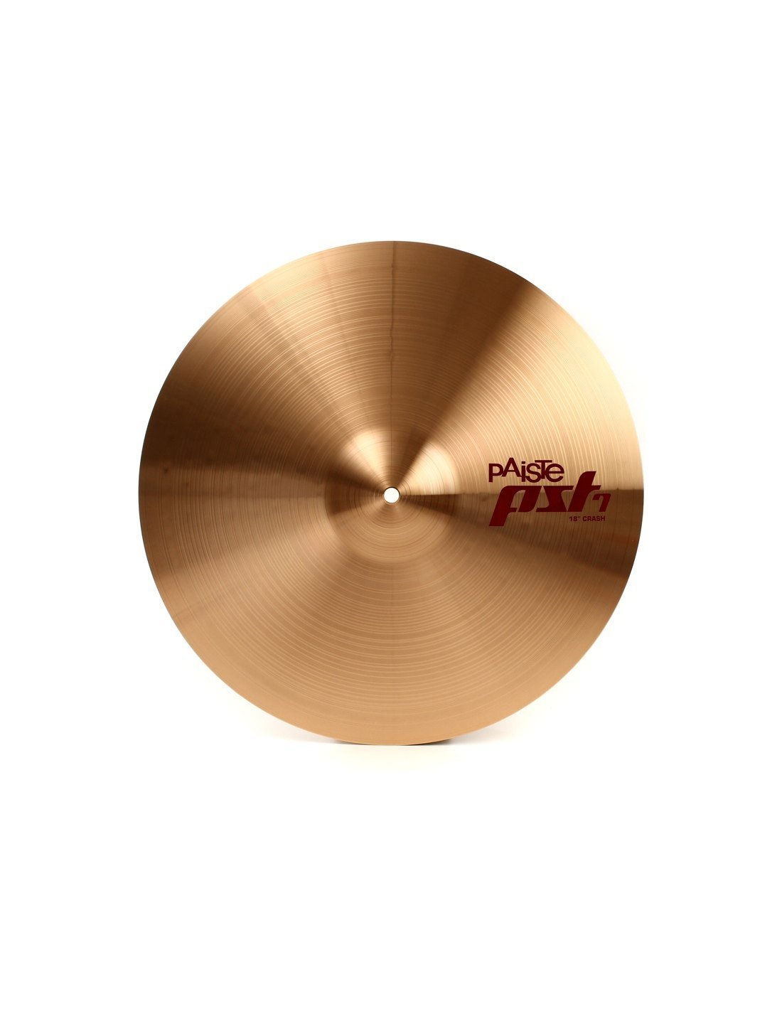 PAISTE PST-7 18 CRASH. Crash da 18" in bronzo CuSn8 finitura regular, peso Medium, volume Medium, sustain Medium e suono chiaro e brillante. Perfetto per una vasta gamma di generi musicali.