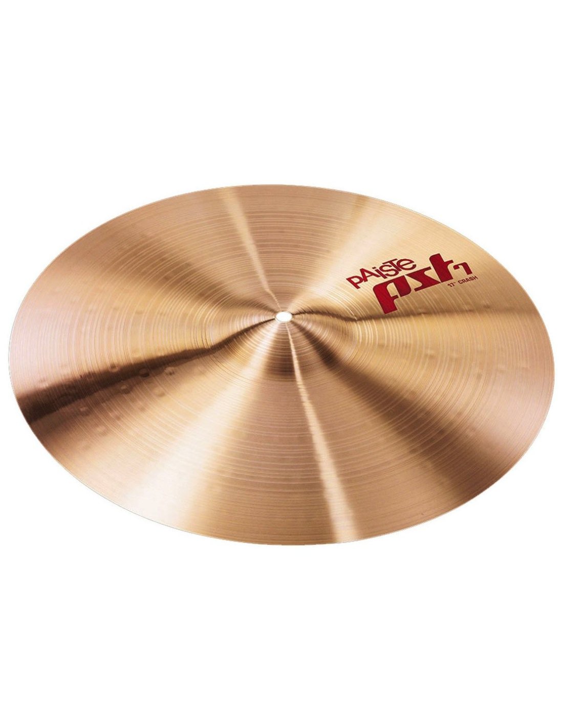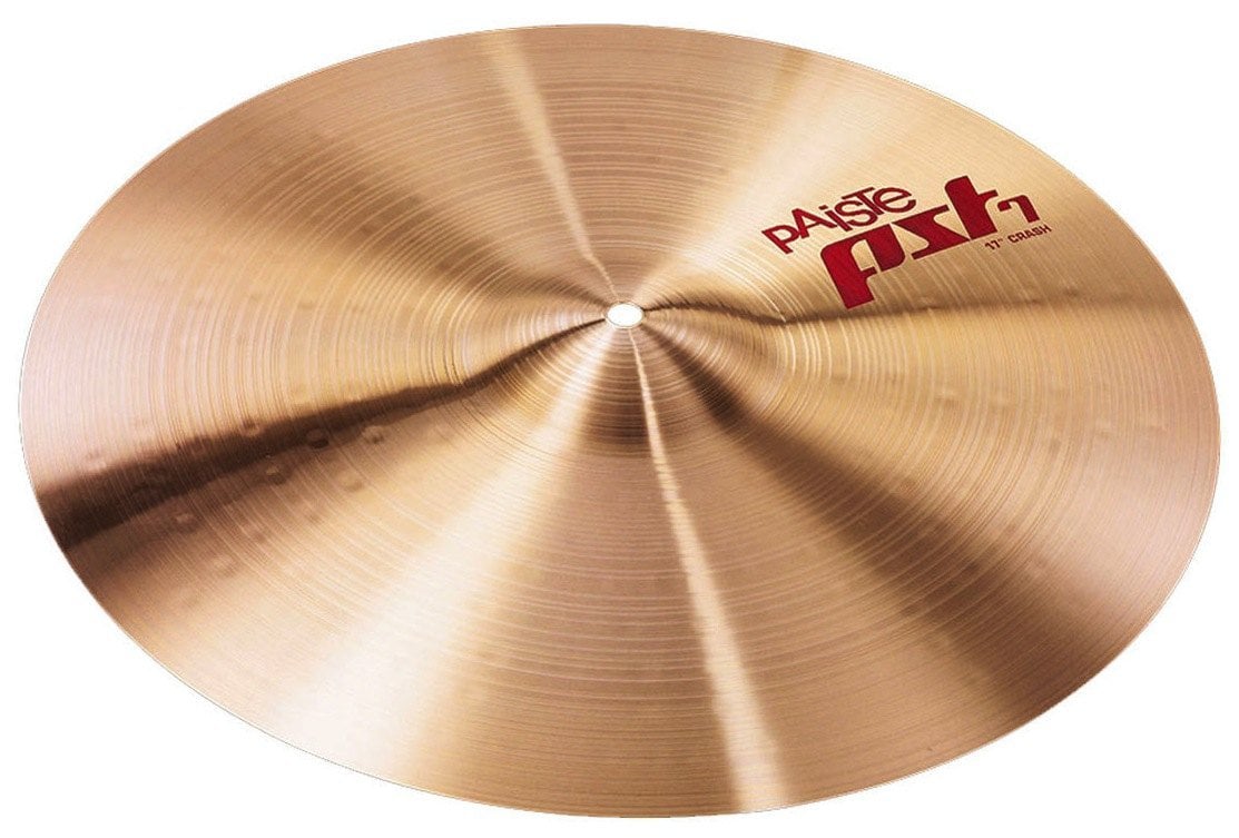 PAISTE PST-7 17" CRASH. Crash da 17" in bronzo CuSn8 finitura regular, peso Medium, volume Medium, sustain Medium e suono chiaro e brillante. Perfetto per una vasta gamma di generi musicali.