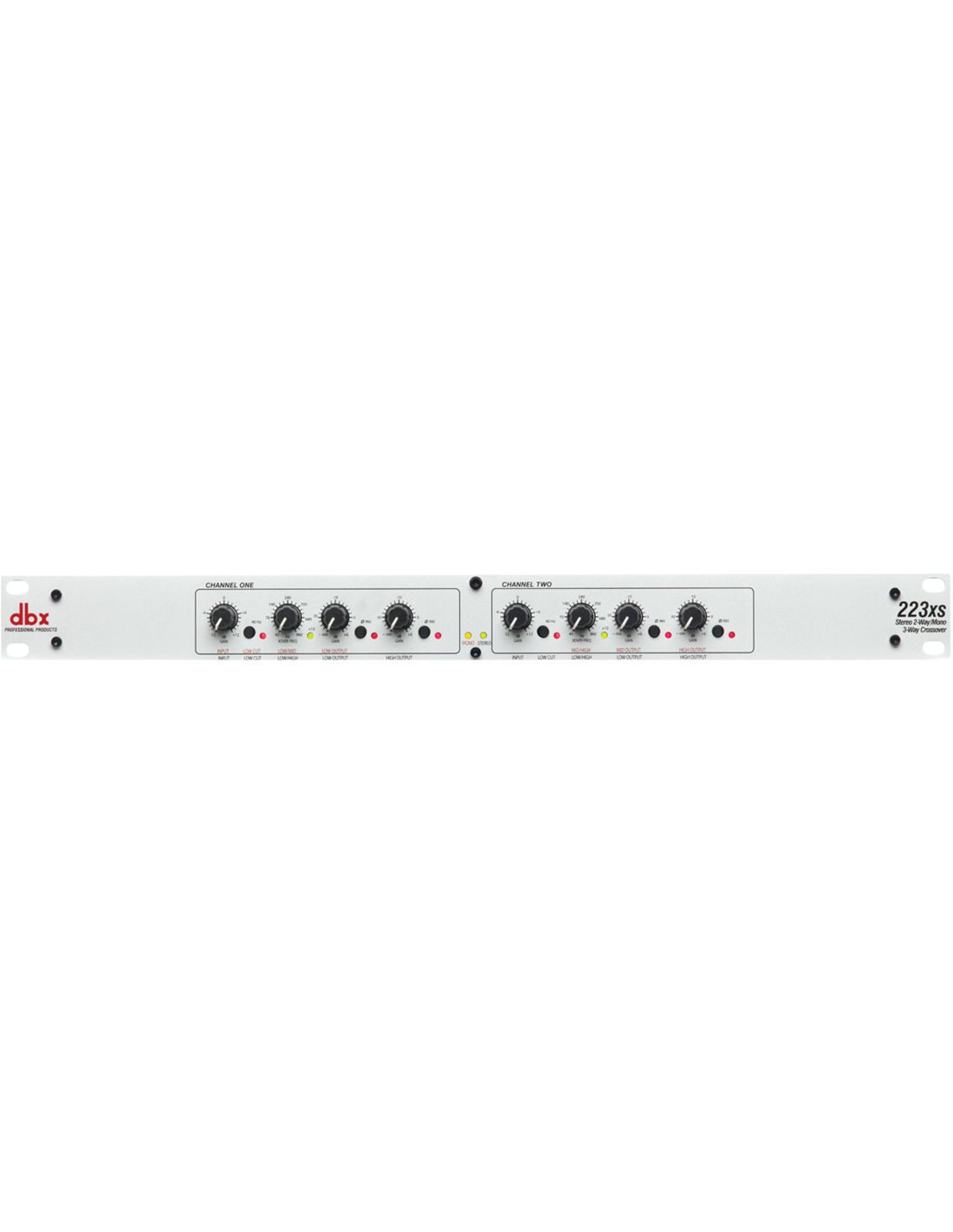 Il DBX 223XS è un crossover stereo a 2 vie o mono a 3 vie con connettori XRL. Il DBX 223XS è dotato anche di un output per il subwoofer, di un filtro passa-alto a 40 Hz per entrambi i canali, di un interruttore phase reverse per tutti gli outputs, di controlli per il livello individuali per ogni output, e di filtri Linkwitz-Riley a 24 dB per ottava.