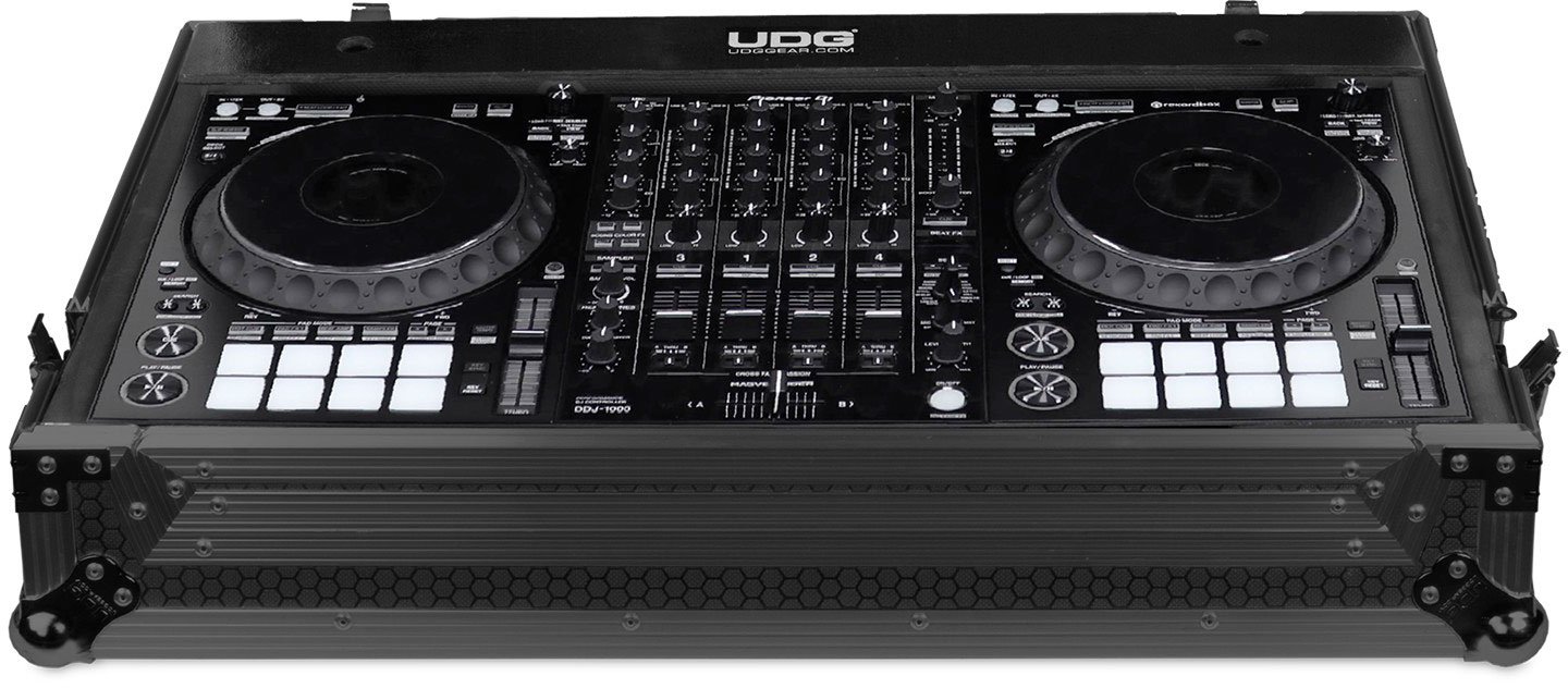 UDG Ultimate Flight Case DDJ-1000 (porta laptop, carrello e ruote). In UDG, abbiamo perfezionato ulteriormente il grande design concettuale delle nostre flight case in particolare per il DJ / producer più esigente. Costruito con un solido compensato di 9 mm di spessore, l'esterno è laminato a nido d'ape / esagonale con finitura nera