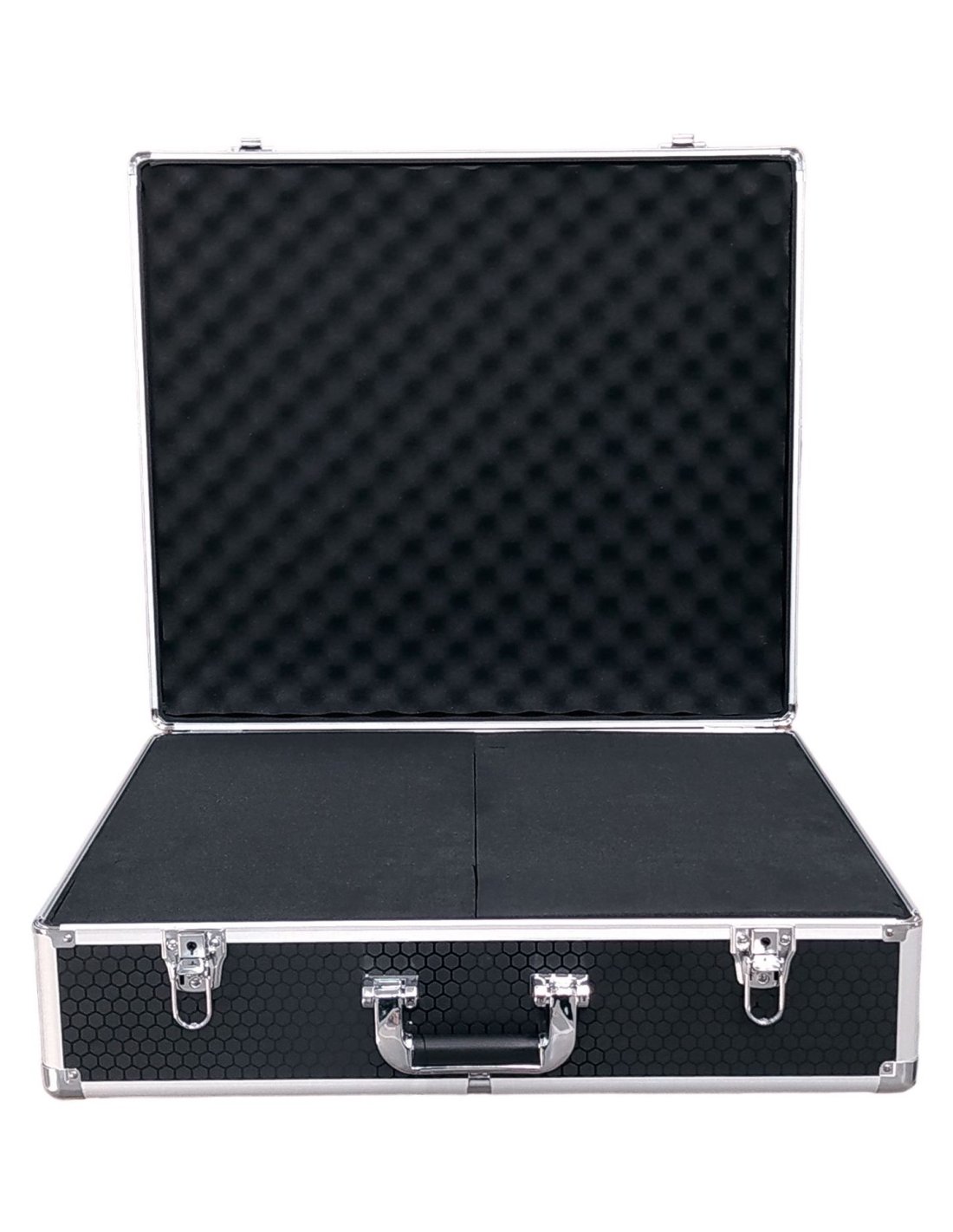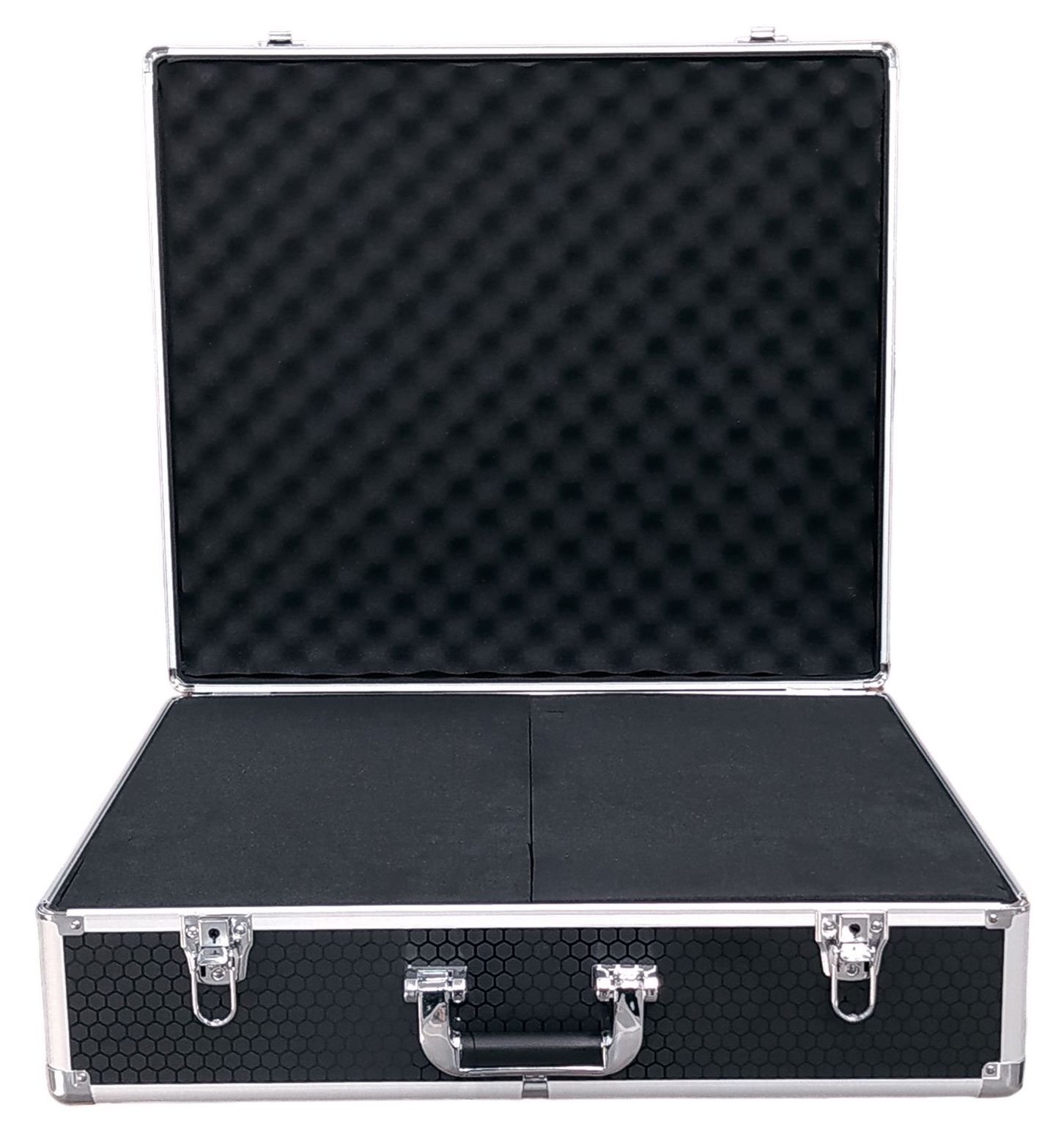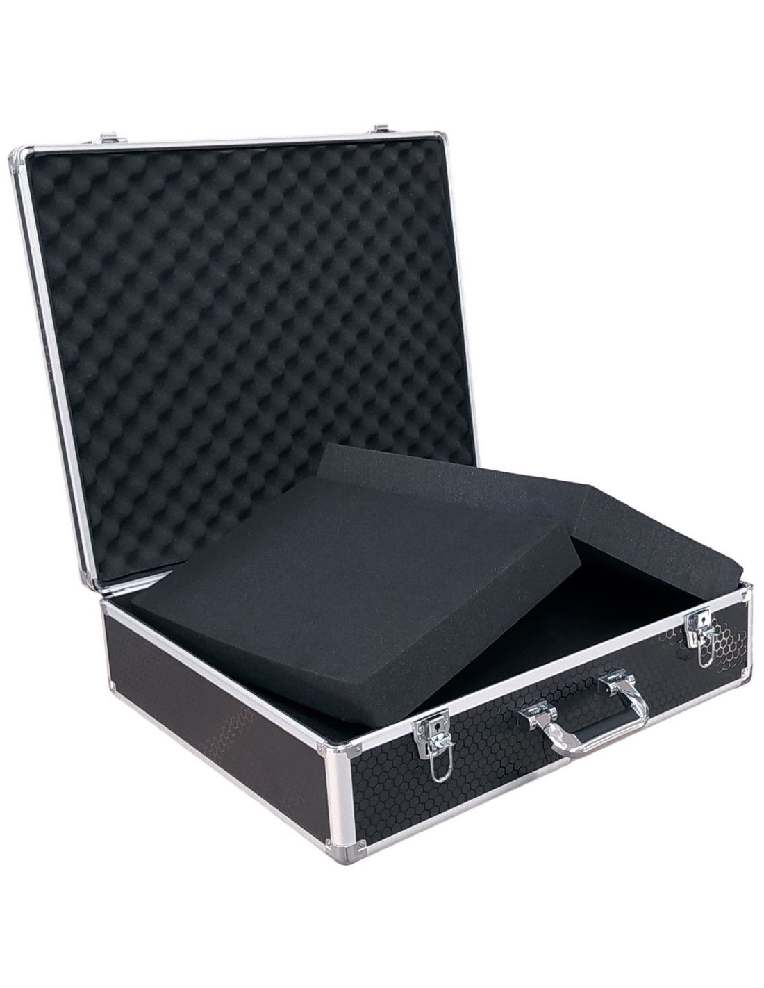COBRA CC1114 FOAM CASE MOD 14 è una valigetta Flight Case realizzata in legno multistrato di betulla, con finitura nera e pannelli a trama nido d'ape, interno rivestito in schiuma antiurto e antigraffio nella parte superiore, mentre nella parte inferiore è presente della schiuma pretagliata per permettere di sgomare perfettamente lo spazio.