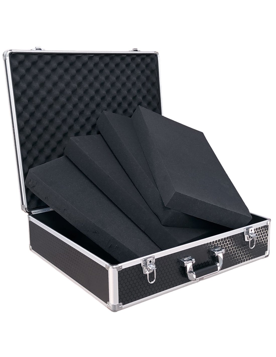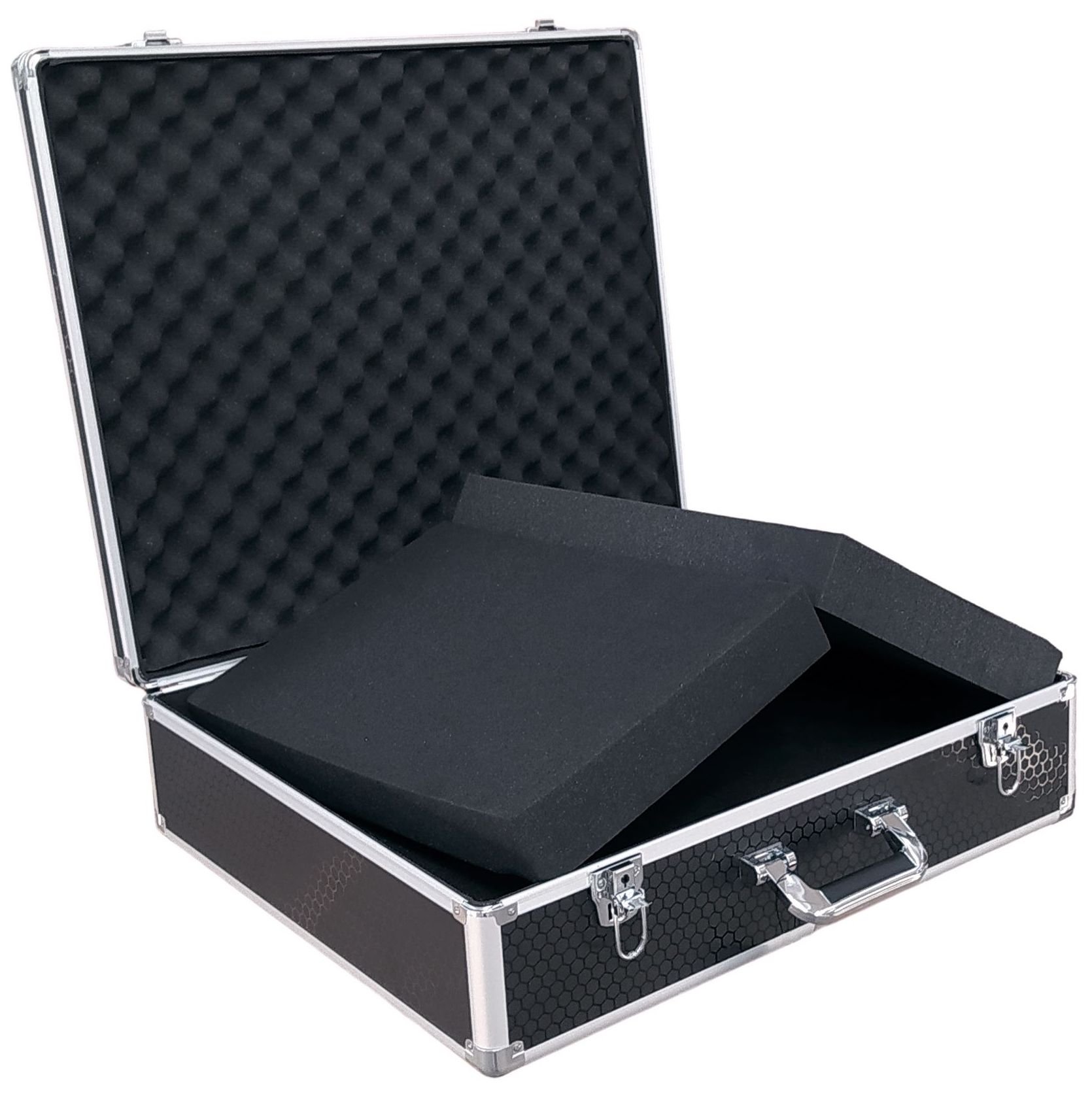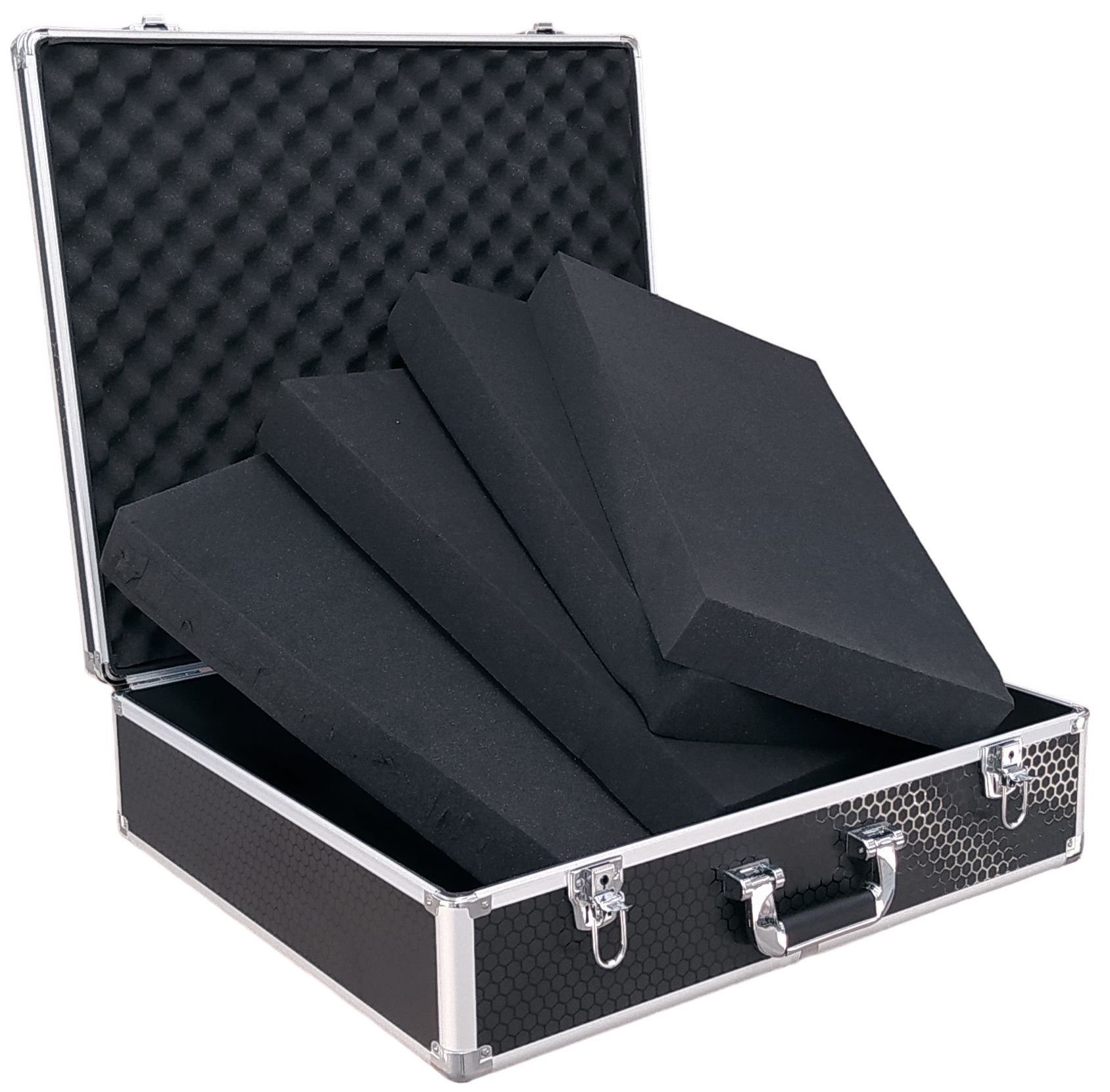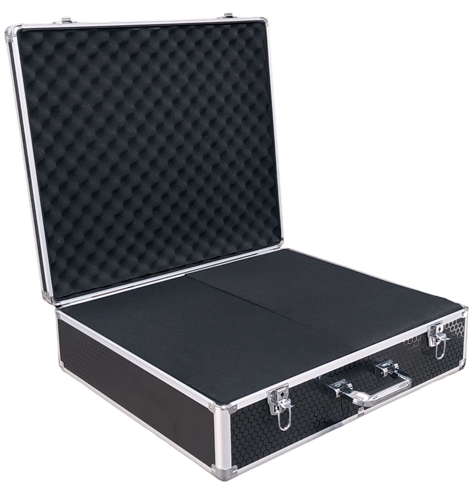 COBRA CC1114 FOAM CASE MOD 14 è una valigetta Flight Case realizzata in legno multistrato di betulla, con finitura nera e pannelli a trama nido d'ape, interno rivestito in schiuma antiurto e antigraffio nella parte superiore, mentre nella parte inferiore è presente della schiuma pretagliata per permettere di sgomare perfettamente lo spazio.