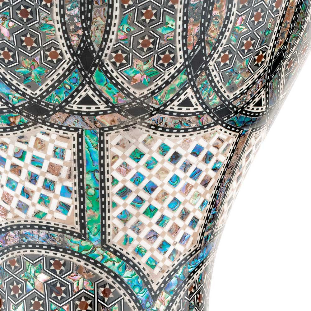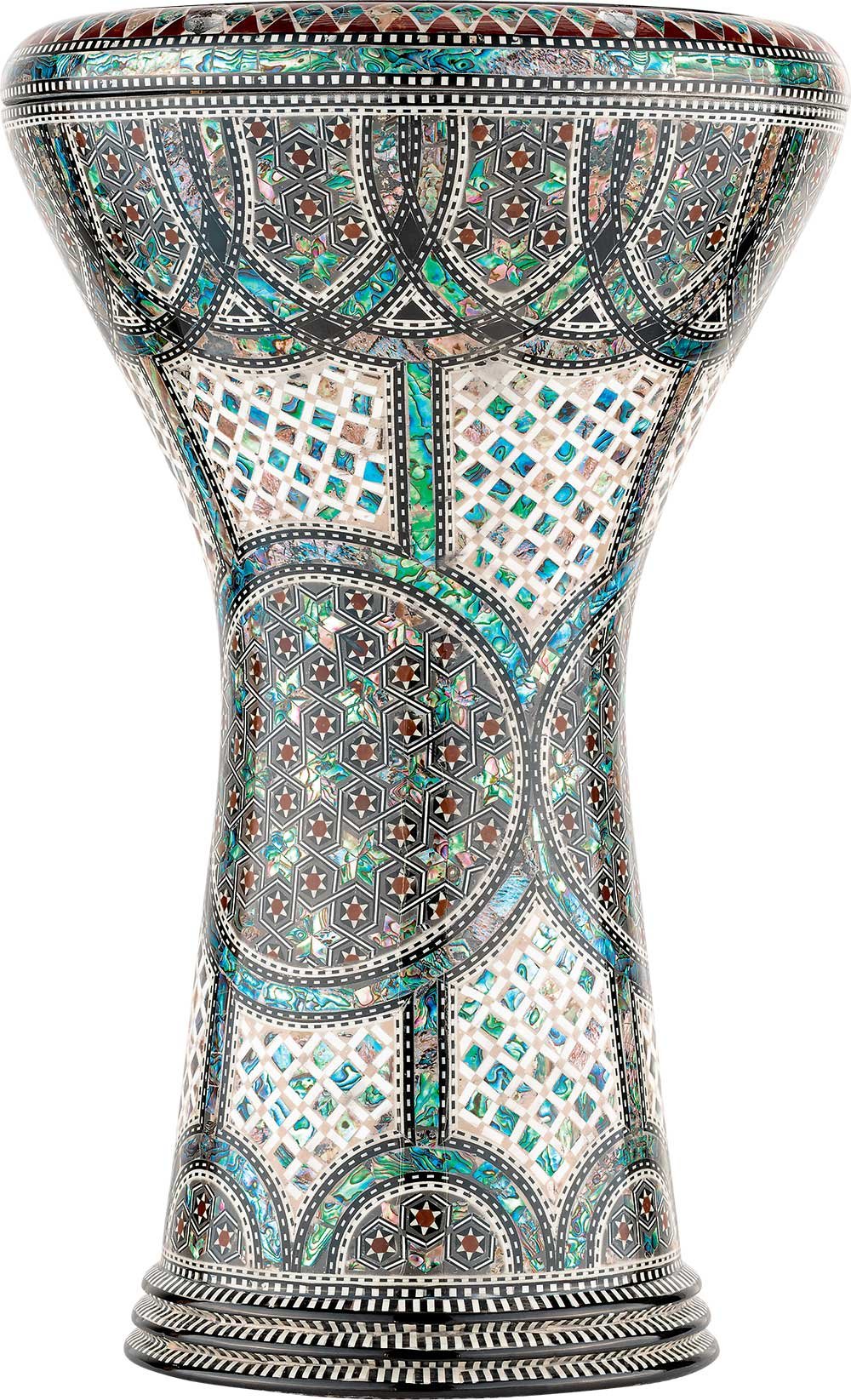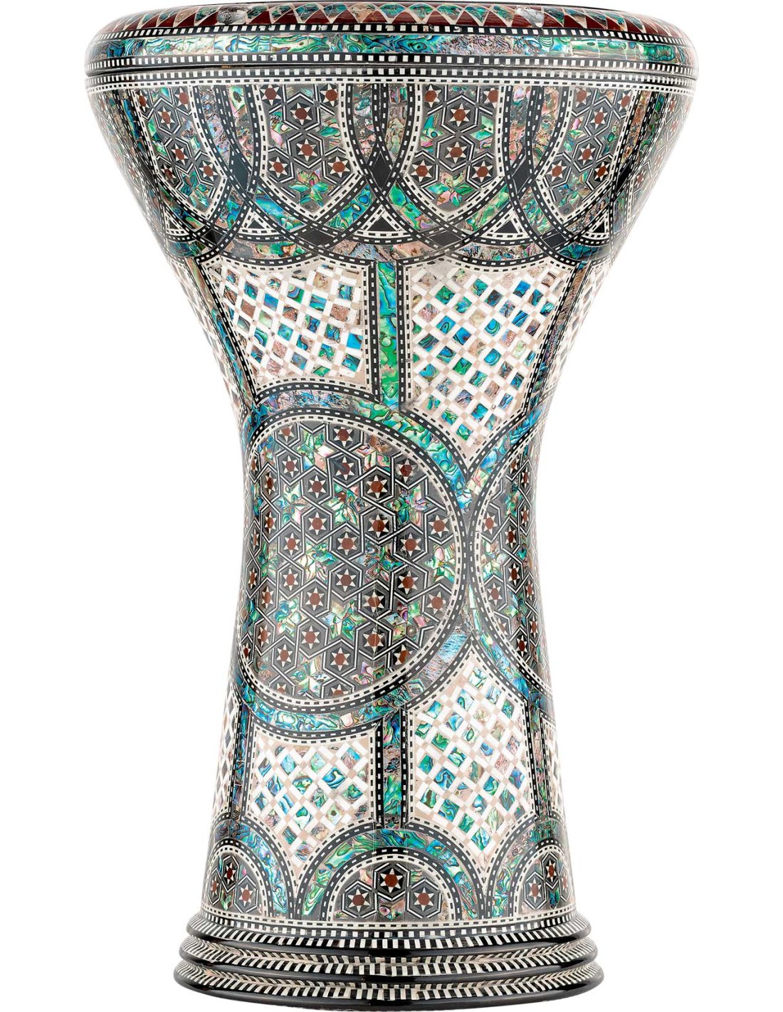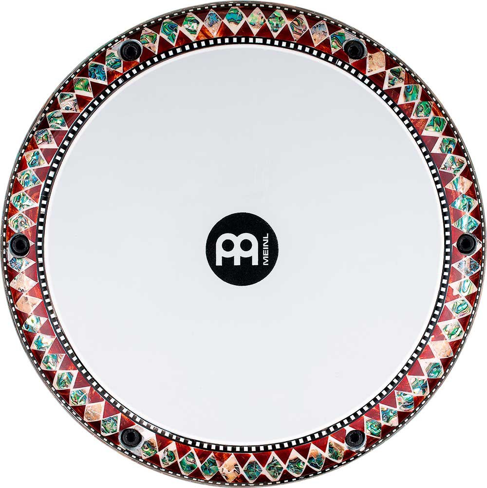 MEINL AEED3 è un Doumbek egiziano da 8,75", realizzato in alluminio pressofuso con finitura a mosaico egiziano ed intarsi in madreperla, della serie Meinl Artisan Edition. Presenta pelle battente sintetica bianca premontata con sistema di regolazione della tensione a vite