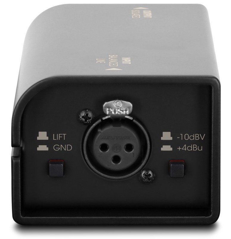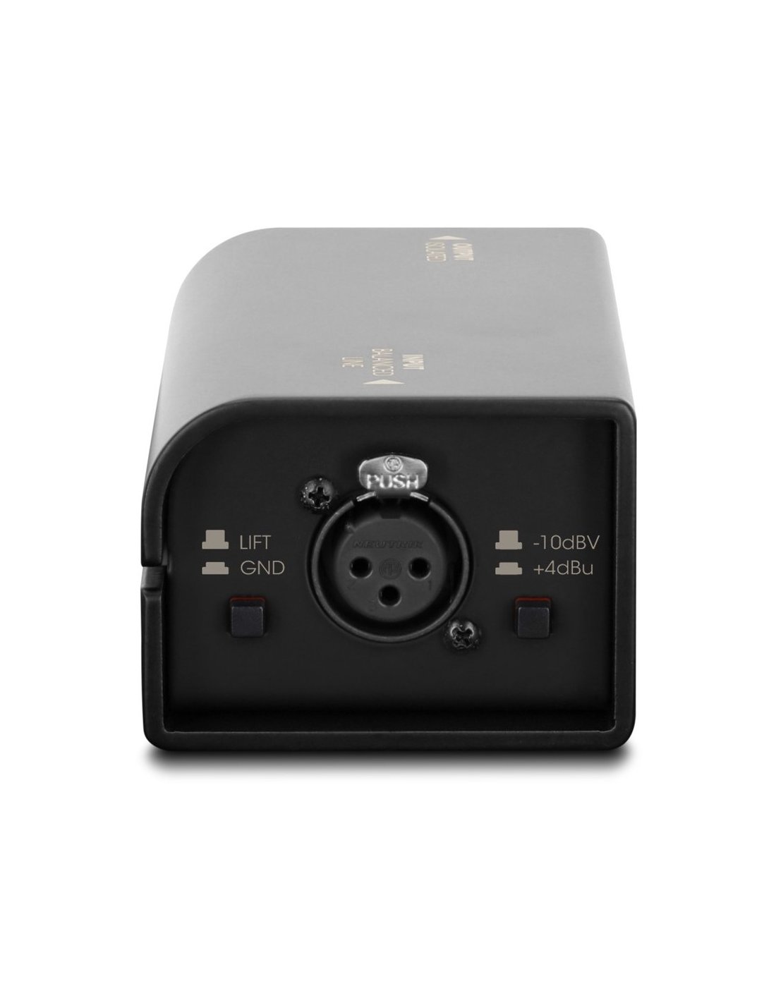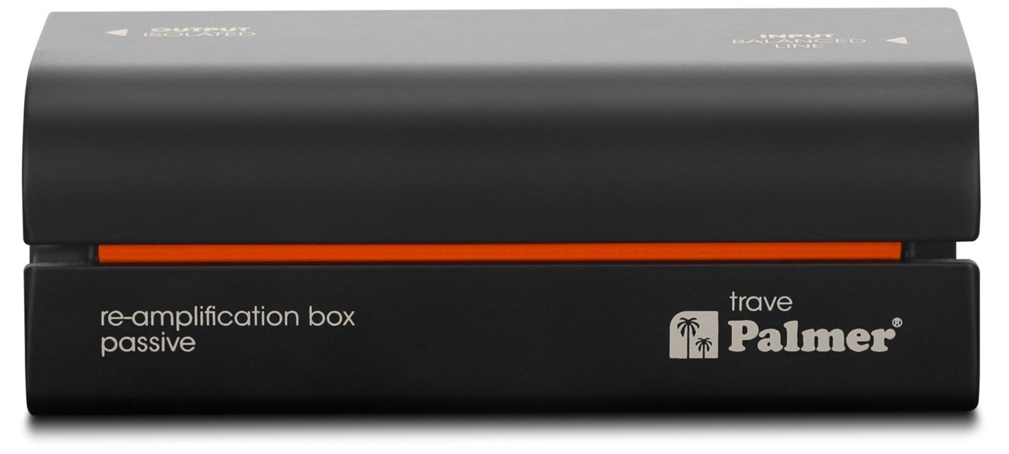 PALMER RIVER TRAVE. Reamping Box passivo che converte segnali di linea bilanciati in segnali Hi-Z per il passaggio di tracce audio negli amplificatori e negli effetti a pedale. Presenta ingresso bilanciato XLR con switch -10dBV/+4dBu, switch per ground lift, uscita Hi-Z tramite Jack 6,3mm con controllo del livello tramite encoder dedicato