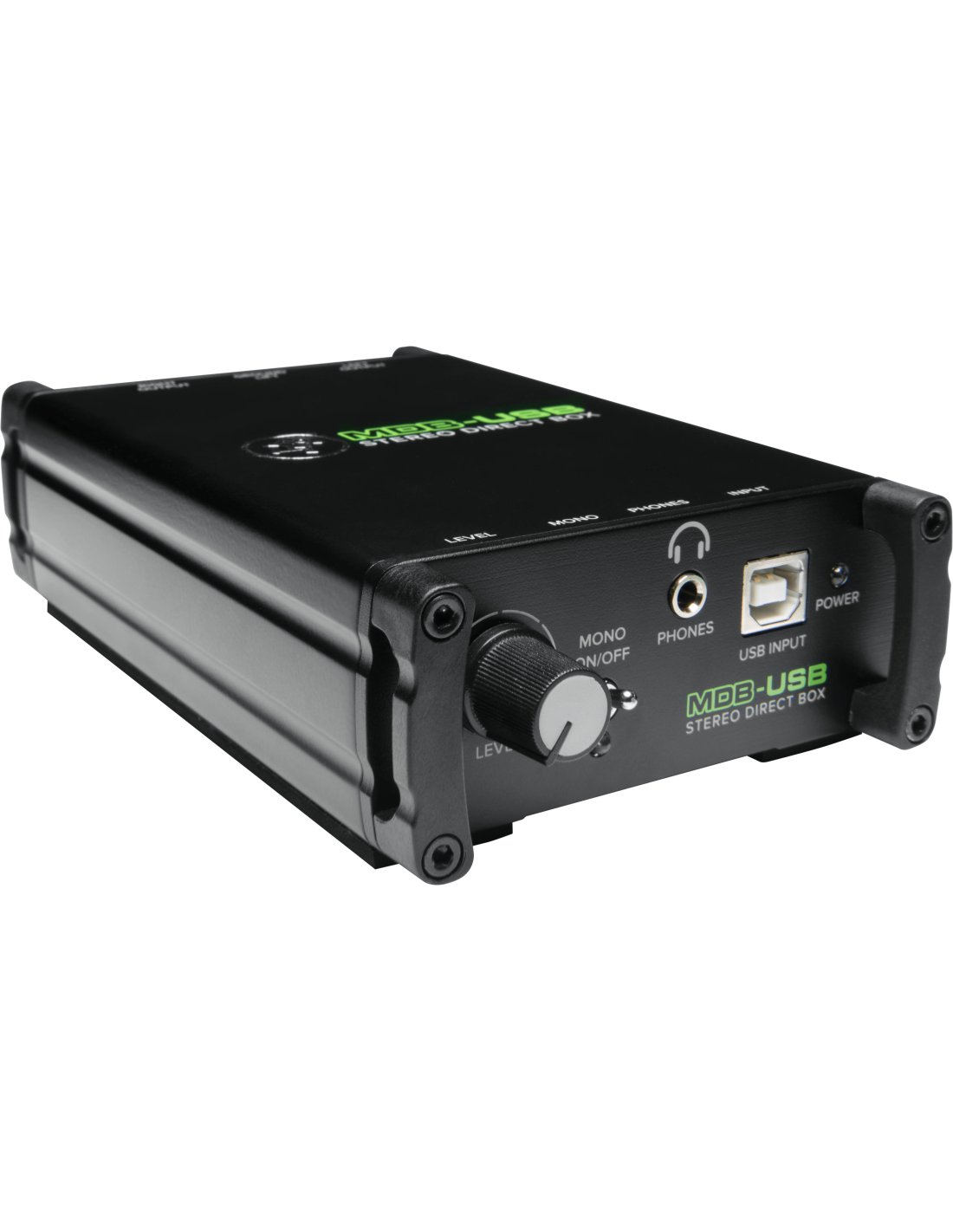 MACKIE MDB USB è una D.I. box USB passiva stereo con interfaccia audio ad alta risoluzione 24 bit/96kHz, per convertire sorgenti audio sbilanciate da computer in sorgenti bilanciate sulle uscite XLR. Le caratteristiche tecniche includono, slot USB-B 2.0, uscita cuffie su Jack 3,5mm TRS per l'audio monitoring, controllo del livello di uscita tramite encoder, Switch per passare alla modalità mono, uscite bilanciate L/R su XLR con switch per Ground Lift.