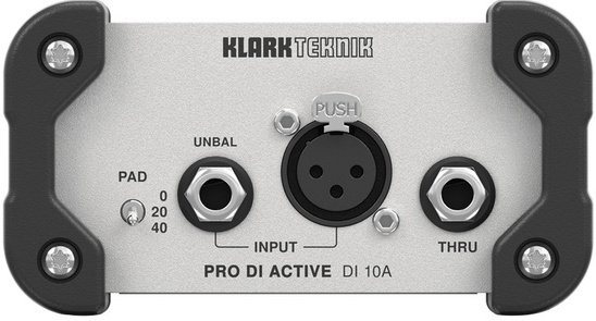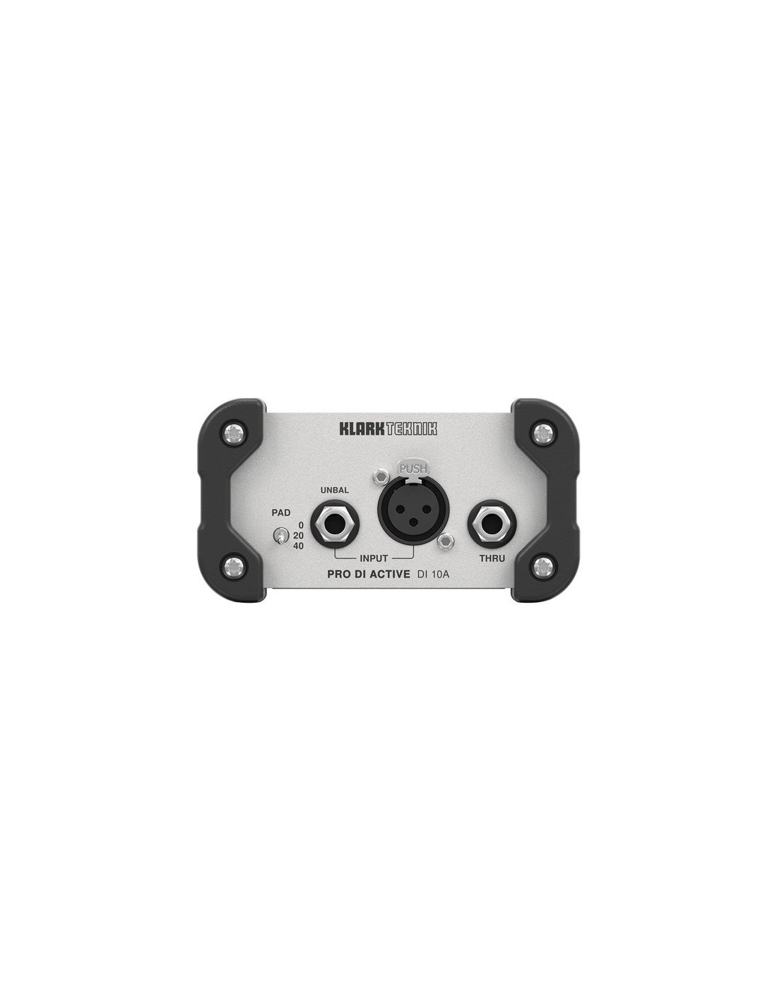 Klark Teknik DI 10A è una DI box attiva che consente di collegare lettori multimediali, tastiere e altre sorgenti stereo alle console di missaggio. E' alimentata tramite alimentazione phantom (48V) o batteria di backup interna opzionale da 9V. E' dotata di trasformatore MIDAS, che garantisce la massima integrità del segnale, elevata headroom, attenuazione dell'ingresso commutabile per livelli di chitarra, linea e altoparlanti, un interruttore di messa a terra, connettori di ingresso TS e XLR da 1/4" e un connettore di uscita XLR Neutrik bilanciato.