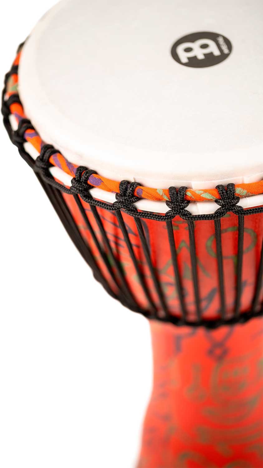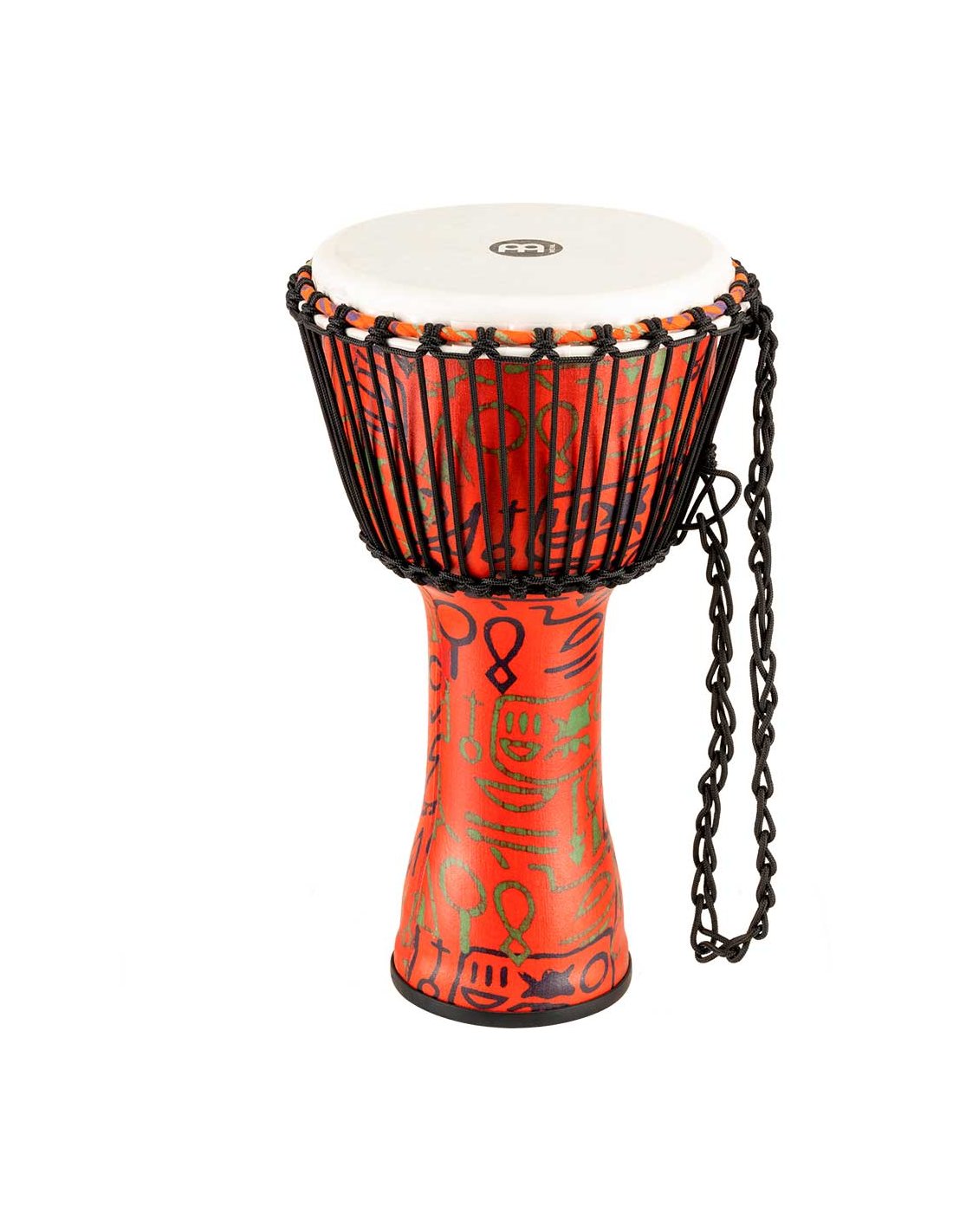 'Djembe da 10''''. I Djembes della serie Travel di Meinl sono progettati per essere trasportati ovunque. Il fusto è fatto di plastica, rendendo lo strumento estremamente leggero e robusto. L'uso della plastica ha dato agli sviluppatori del prodotto Meinl l'opportunità di risparmiare il 20% di peso in più rispetto al modello in fibra di vetro. Inoltre, questo materiale leggero vibra facilmente imprimendo il suono con alti davvero vibranti e bassi incredibilmente profondi.